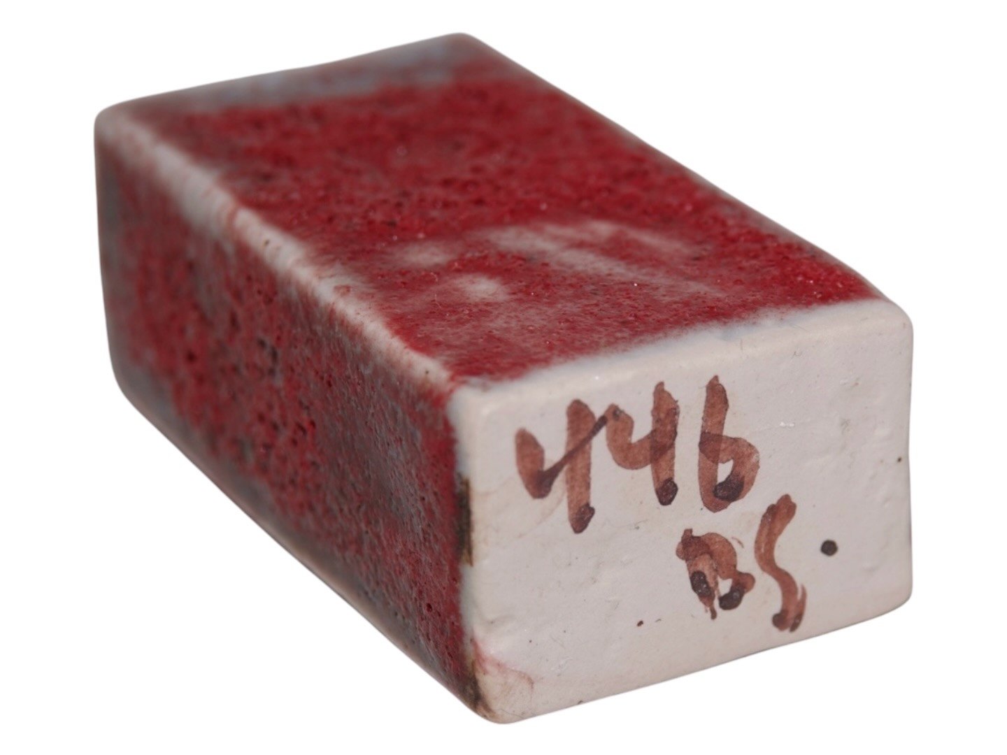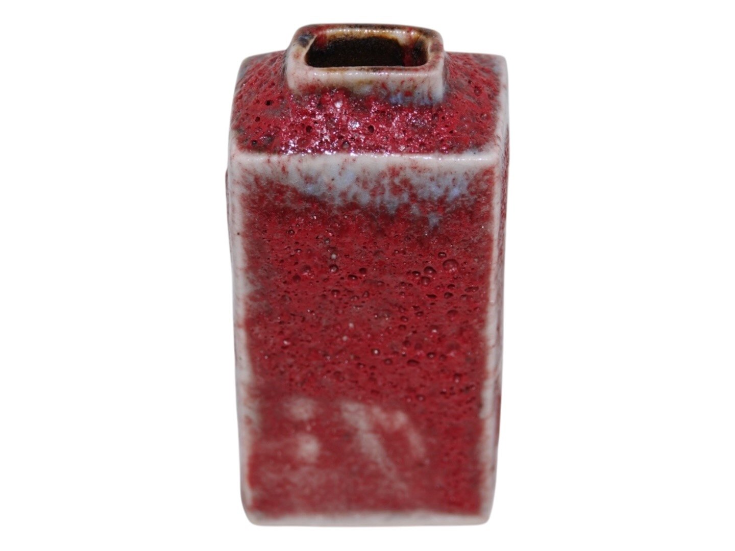 Bente Skjøttgaard art pottery, miniature vase with red lava glaze.