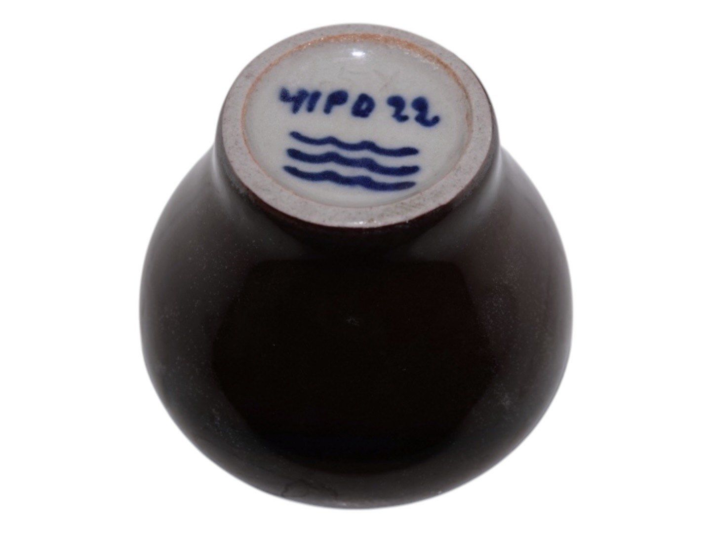 Royal Copenhagen keramik mørkebrun miniaturevase - Glasurprøve.