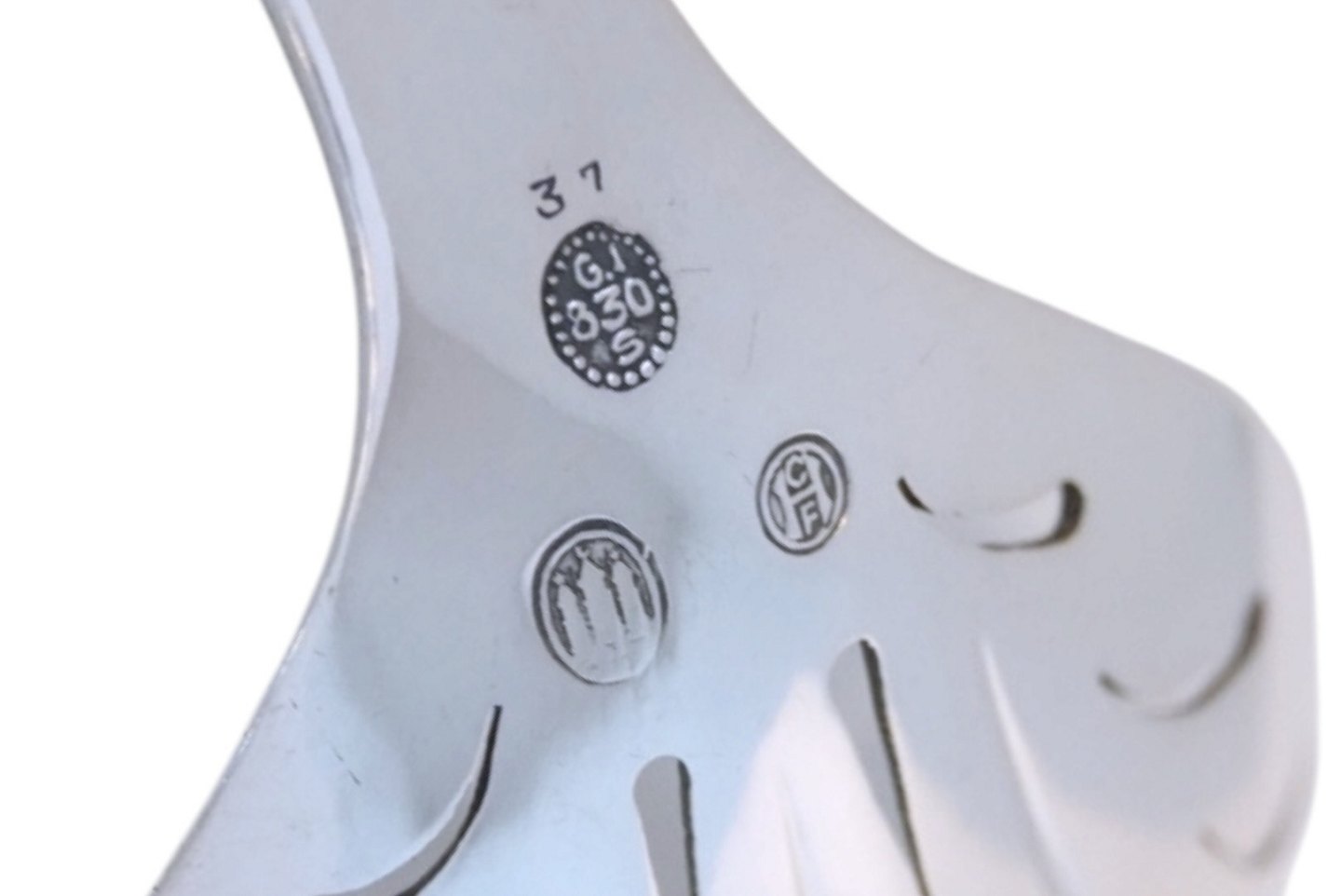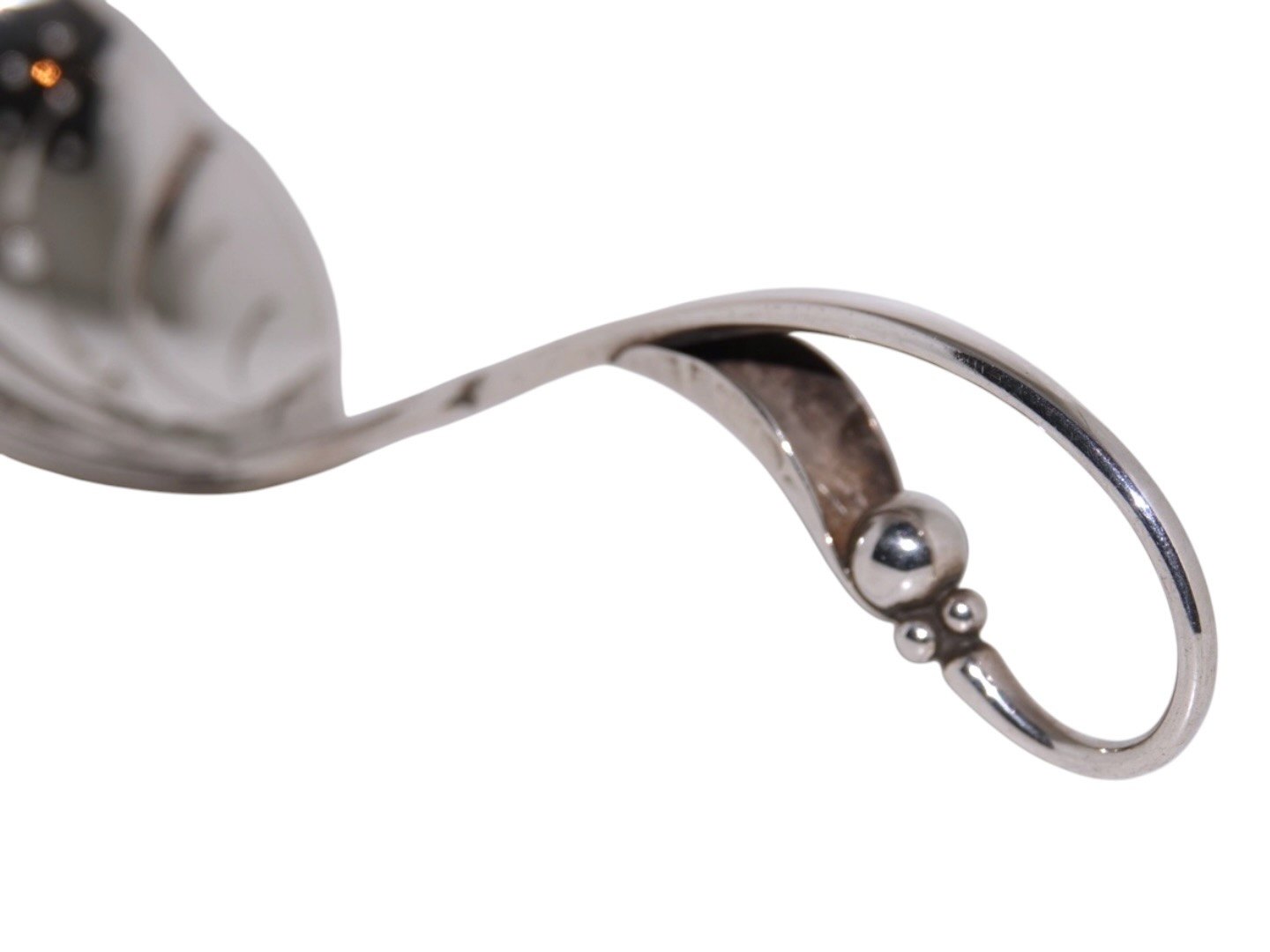 Georg Jensen silver, early ornamental strawberry spoon. This was produced before 1932. Length 15.5 cm. Excellent condition with no engravings.
