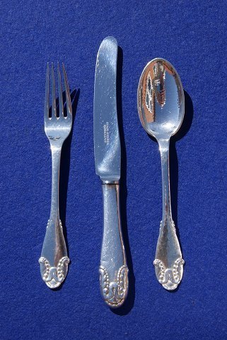 Evald Nielsen No 20 Danish silver flatware Rain. Settings cutlery of 3 pieces