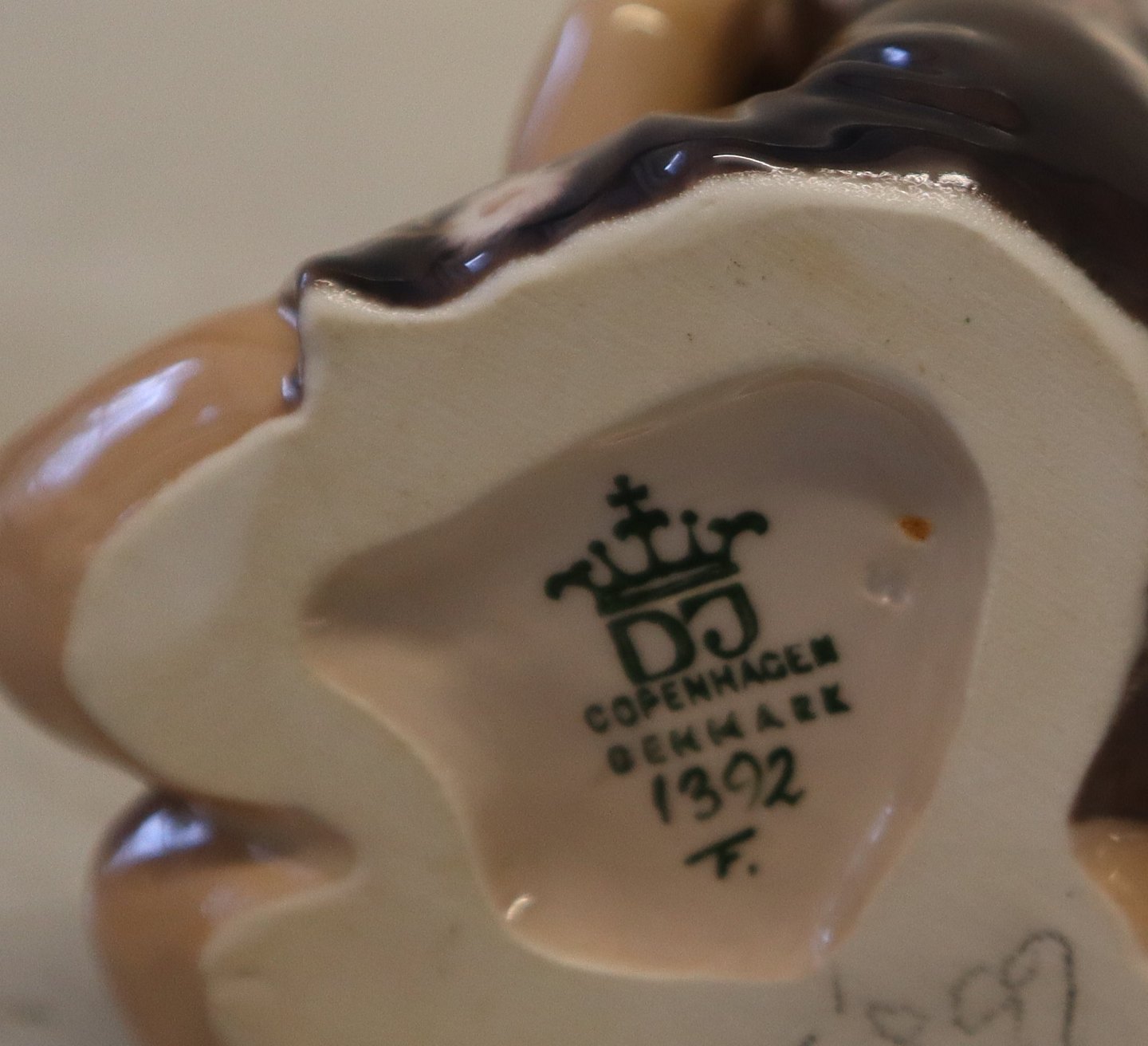 Dahl Jensen 1392 Lisa - Girl in blue dress (Johan Galster) Dark dress Marked with the Royal Crown and DJ Copenhagen. Both versions are sold In nice and mint condition Dahl Jensen Worked first for Bing & Groendahl B&G from 1897 Dealer