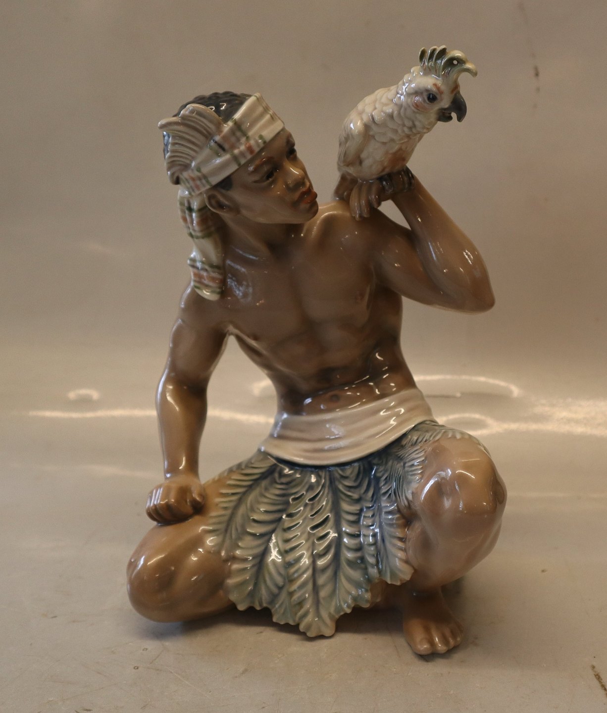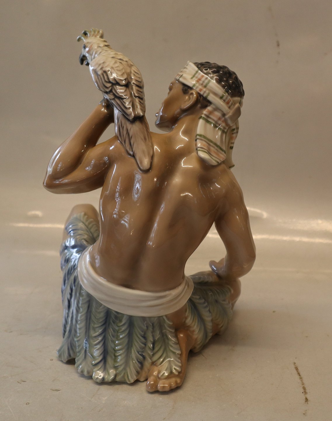 Dahl Jensen 1305 Sudanese Man with cockatoo (DJ) 23 cm Oriental Man with bird Marked with the Royal Crown and DJ Copenhagen. In nice and mint condition Dahl Jensen Worked first for Bing & Groendahl B&G from 1897 Dealer