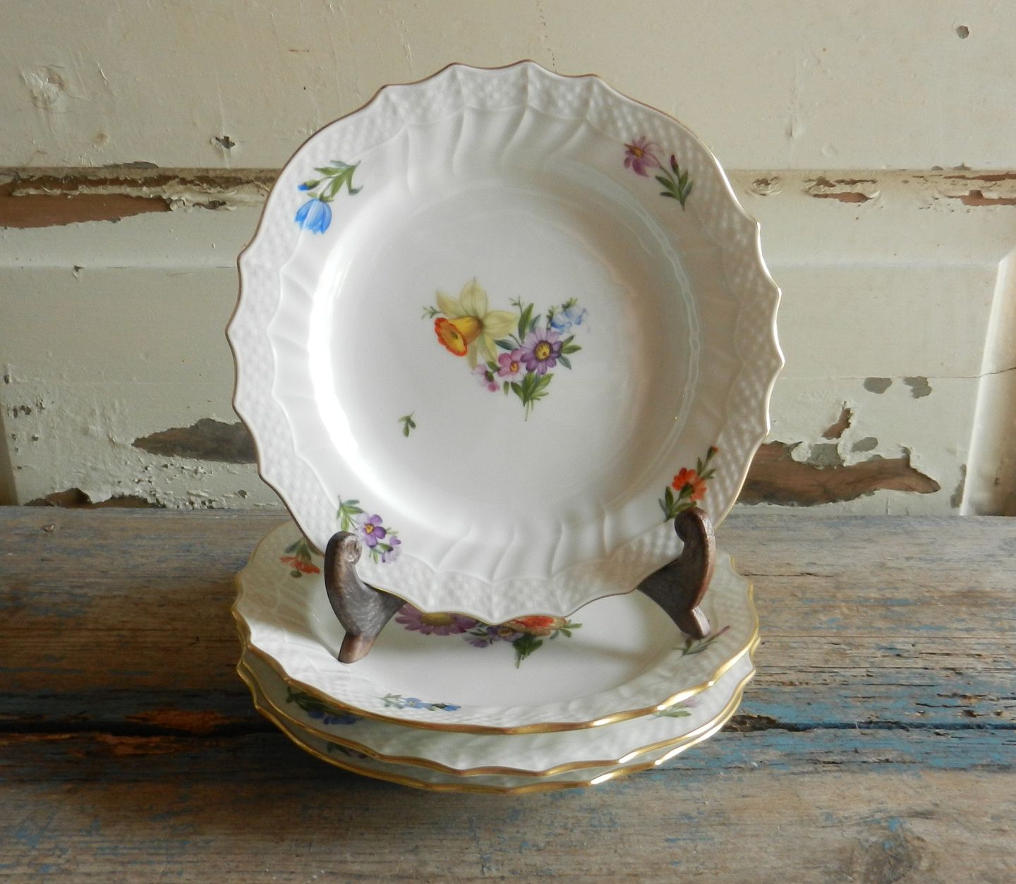 Royal Copenhagen, Let Saksisk Blomst, stor kage tallerkenerNo. 1625, 1. sort. 4 stk på lager.