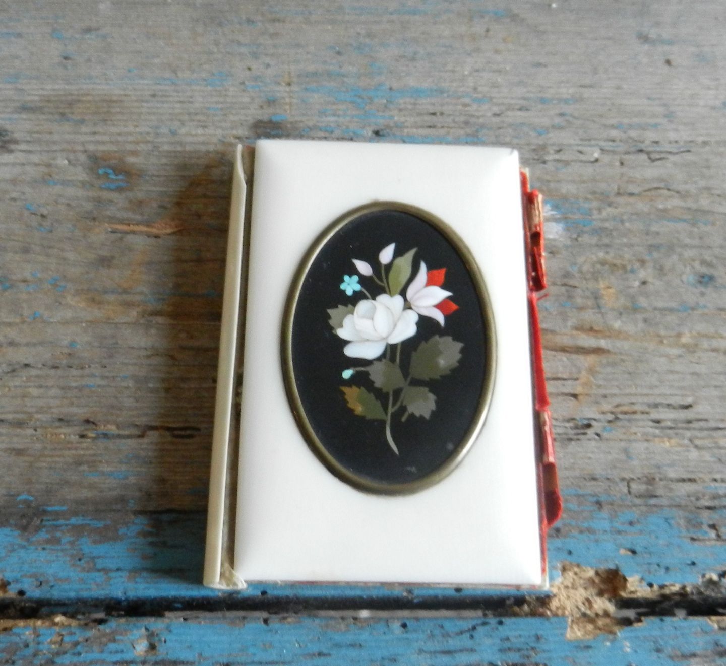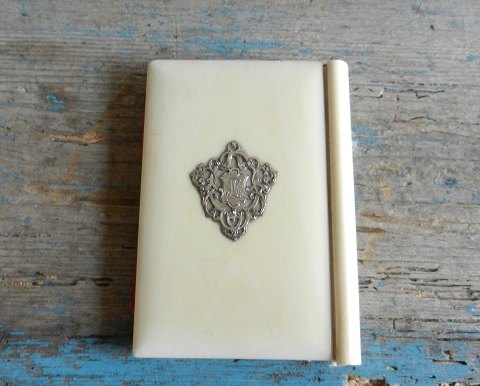 Unik 1800tals Balkorts bog i ben med medaljon af Pietra dura og initialer (MJ) graveret i sølv på bagsiden.Fremstår med lille afslag på "ryggen"