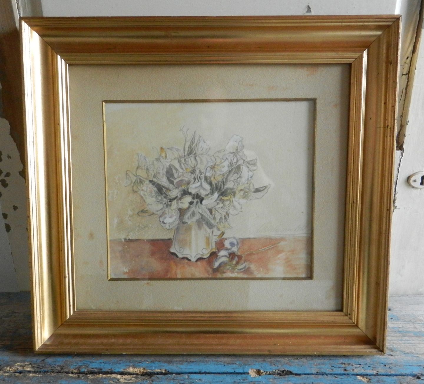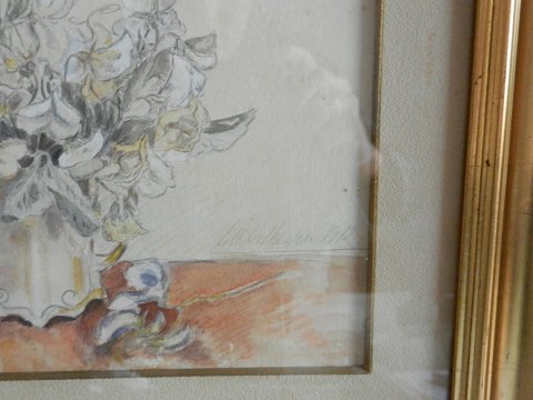 Skøn akvarel, latyrus i vase.Signeret 1912.