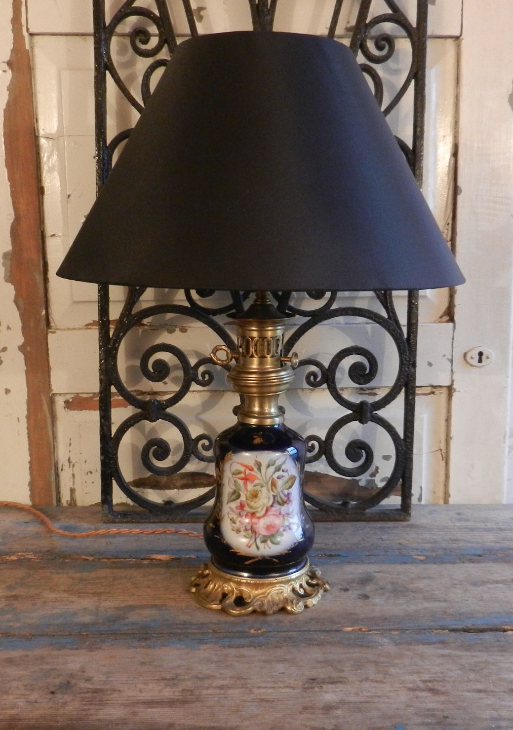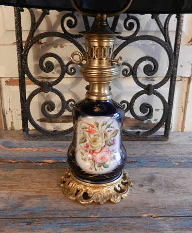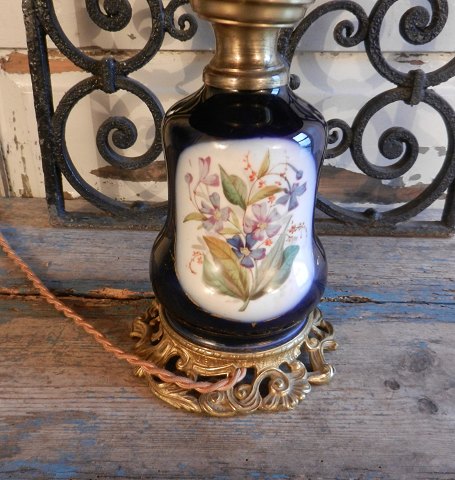 Smuk bordlampe med håndmalede blomster motiver monteret på lue forgyldt bronzefod.Højde incl skærm 52cm.