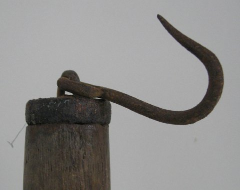 Vægt i egetræ, Danmark, 1700-tallet, profileret, med jern i enden og krog. Med små messingsøm. L.: 72 cm.Emne nummer: 4195