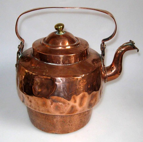 Svingkeddel i kobber, Danmark, 19. årh. Med hank og låg. Med æsk. Højde til hank: 25 cm. Dia.: 19 cm. Ustemplet.Emne nummer: 5863