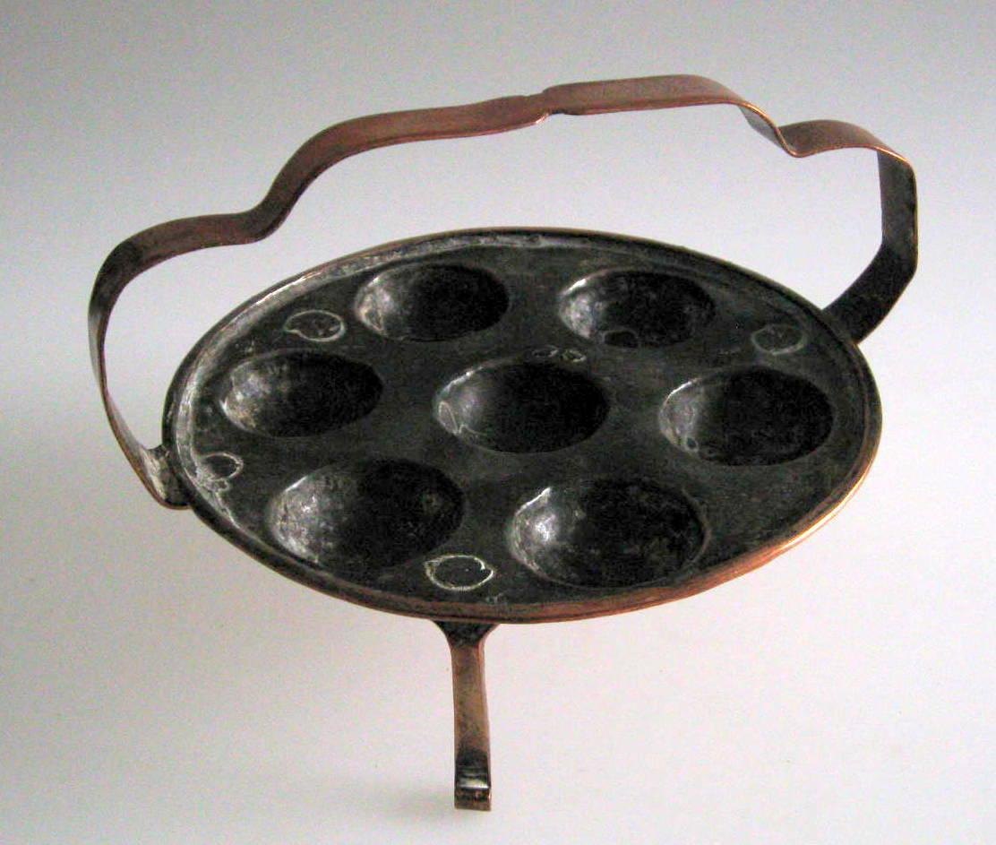 Antique batter pan in copper, 1842. On tripod with handle. Inside tinned. With the following inscription: Ane Haldner 1842. Provenance: Family from The South of Jutland.Item number: 6948