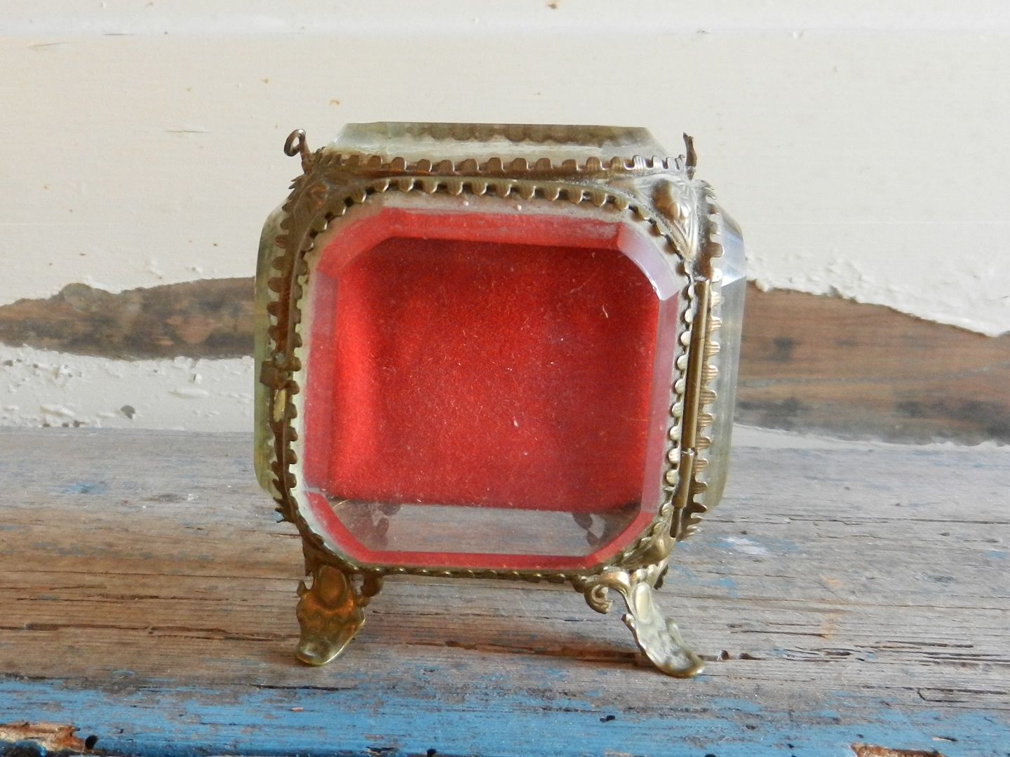 Smukt fransk glas skrin.Mål 5x7,5cm. Højde 9cm.