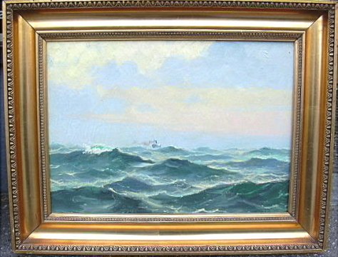 Vilhelm Bille 1864-1908Maritimt maleri med skib i baggrunden