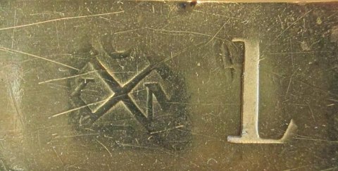 Rivejern i messing, 19. årh. Stemplet: Kobbermøllen ved Flensborg. Med perforeret, opbuet messingplade oplagt på messingbøjle. L.: 34 cm. B.: 12 cm.Et par lister er ret løse. Ellers fint eksemplar.