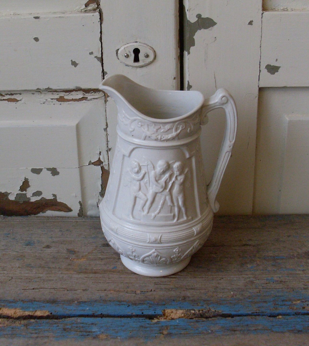 Skøn gammel fajancekande med Thorvaldsens motiver.Højde 20cm.
