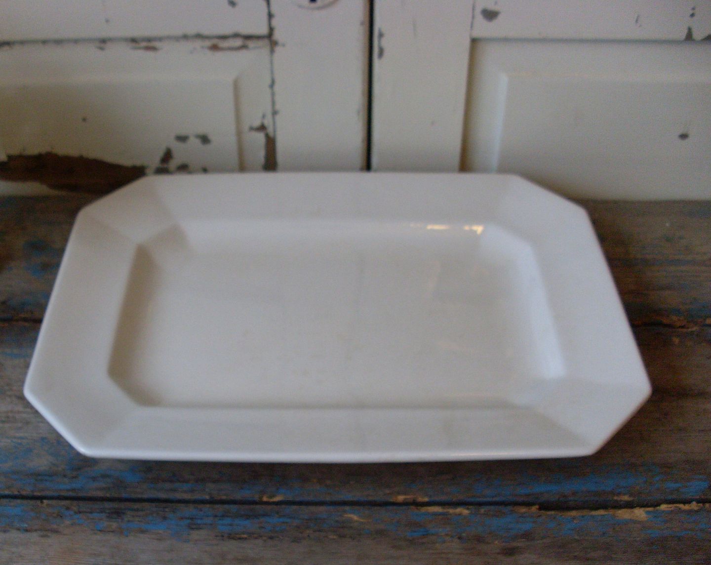 Stort Kantet fajance fad fra Københavns fajance fabrik (Aluminia)Mål 32x43cm.