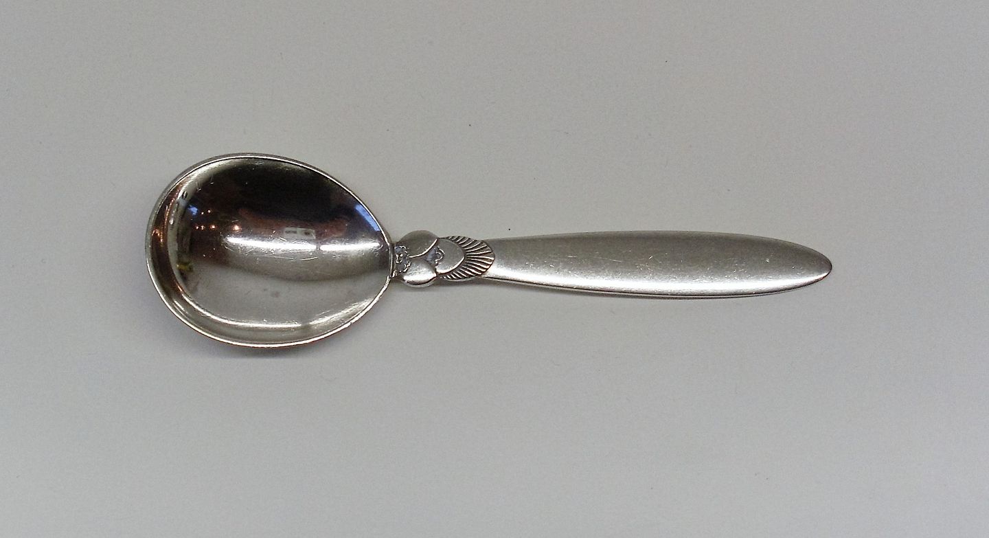 Georg Jensen Kaktus marmeladeskeStemplet GJ, 925, de tre tårne 1932.