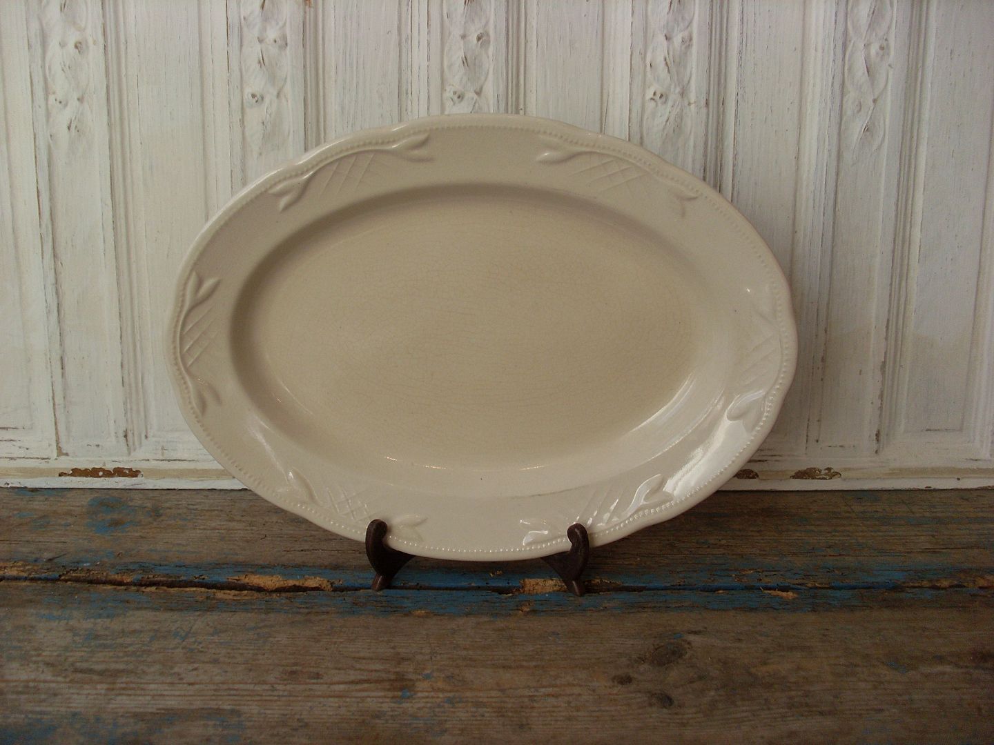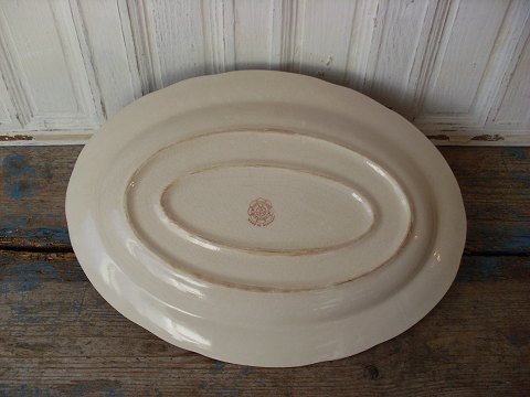 Smukt gammelt fajancefad med fin dekoration på kanten.Mål 24,5x33cm.