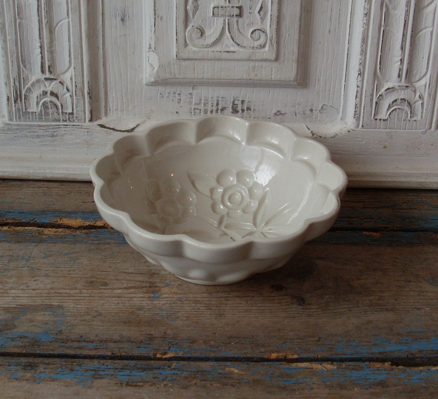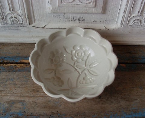 Cremefarvet fajance form.Højde 9cm. Diameter 22cm.