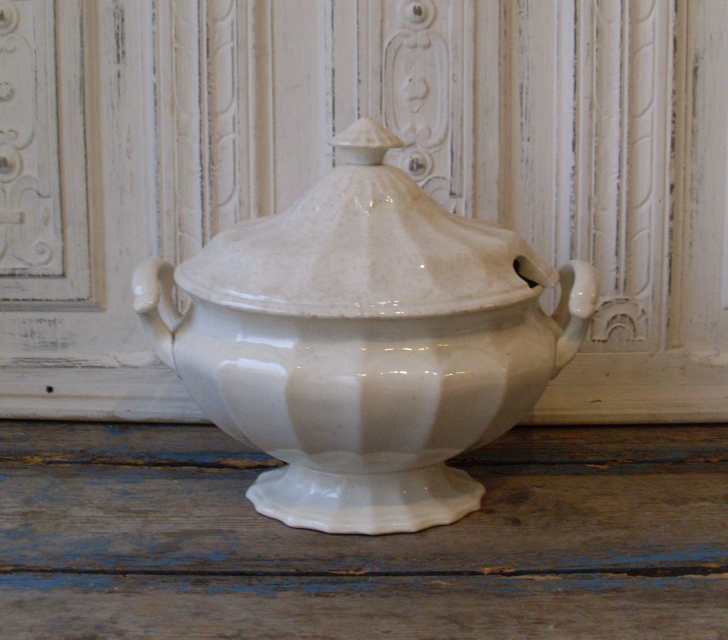 Smuk kantet fajance terrin.Fremstår med skøn patina.