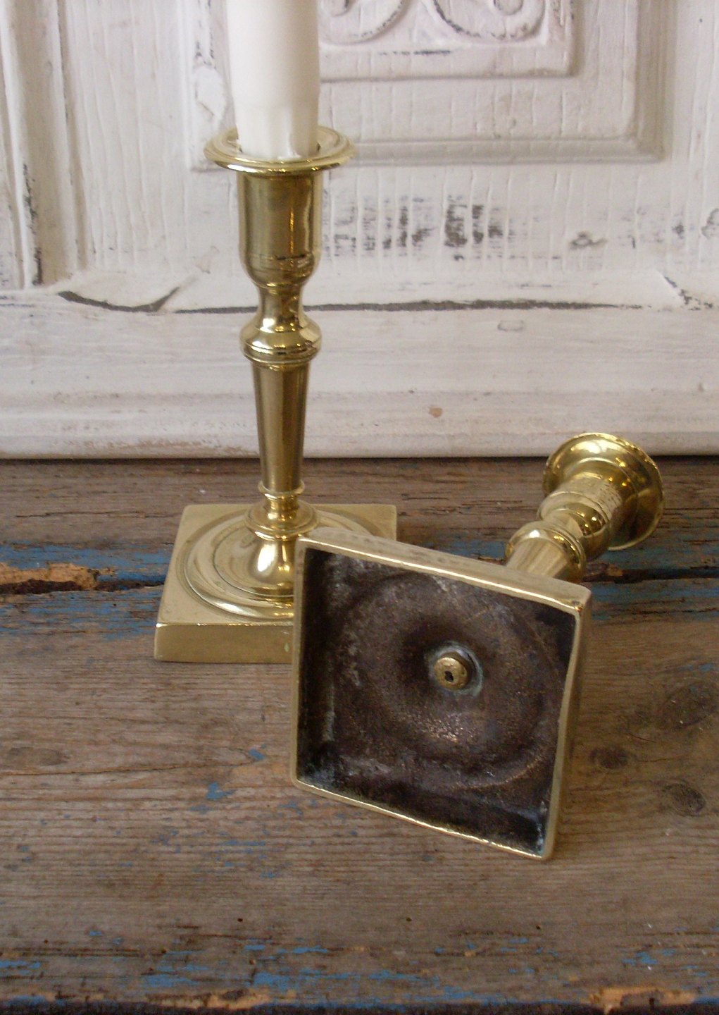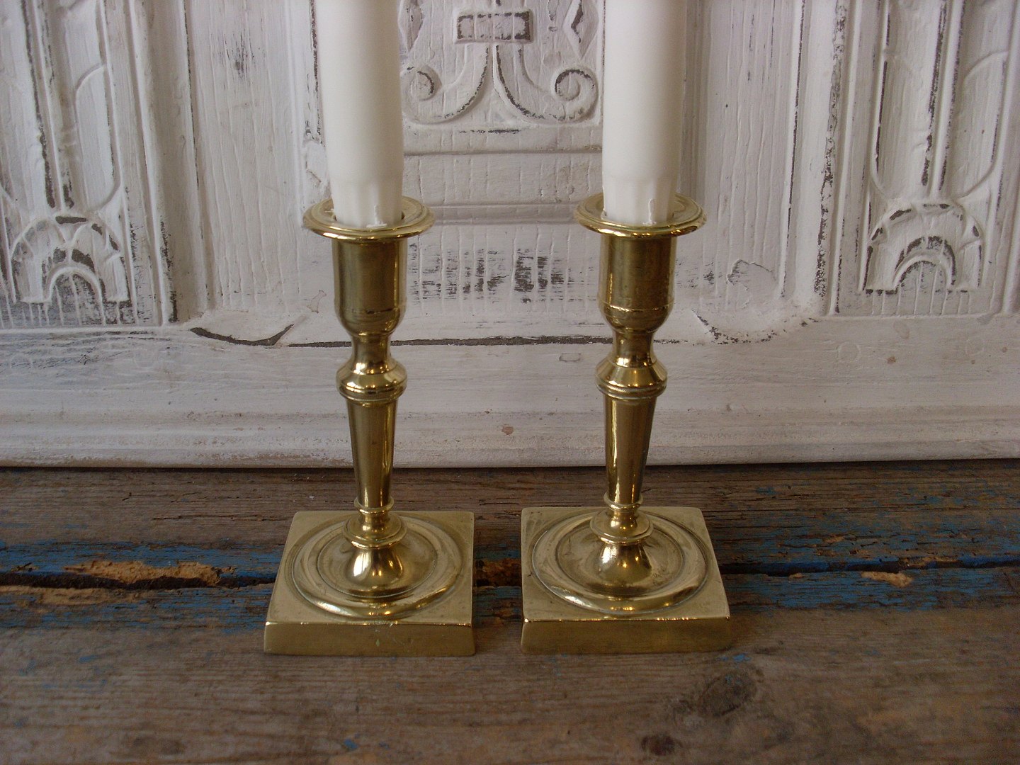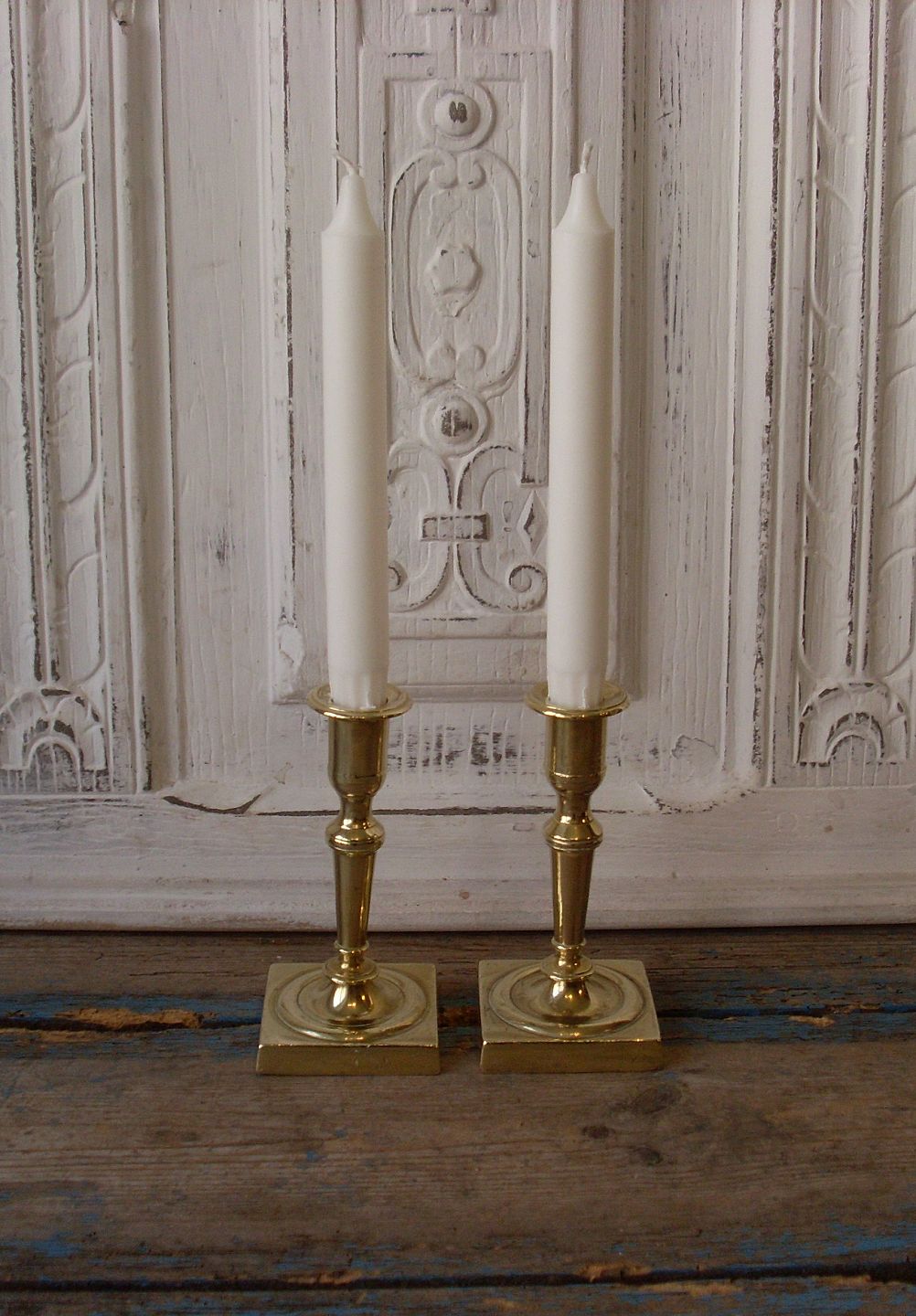 Par smukke empire stager i messing.Højde 14,5cm.