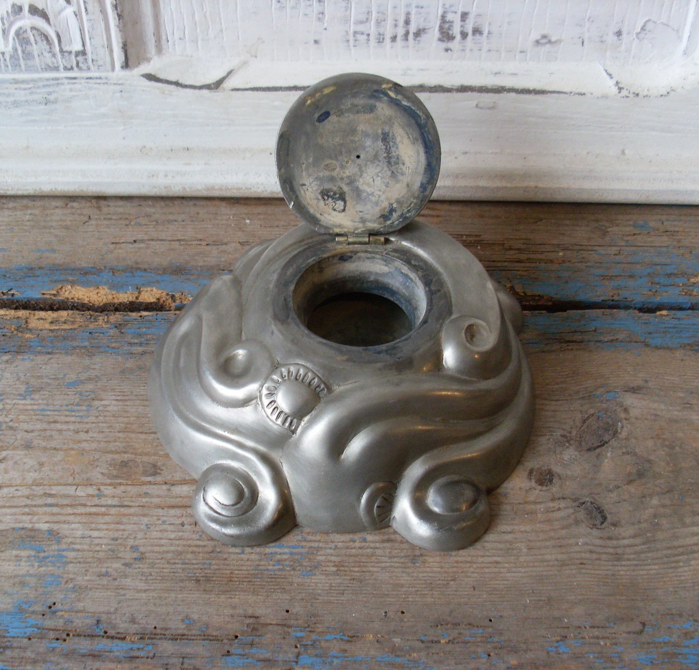 Hertz & Ballin skønvirke blækhus i tin fra 1928.Stemplet HB - Denmark 1928