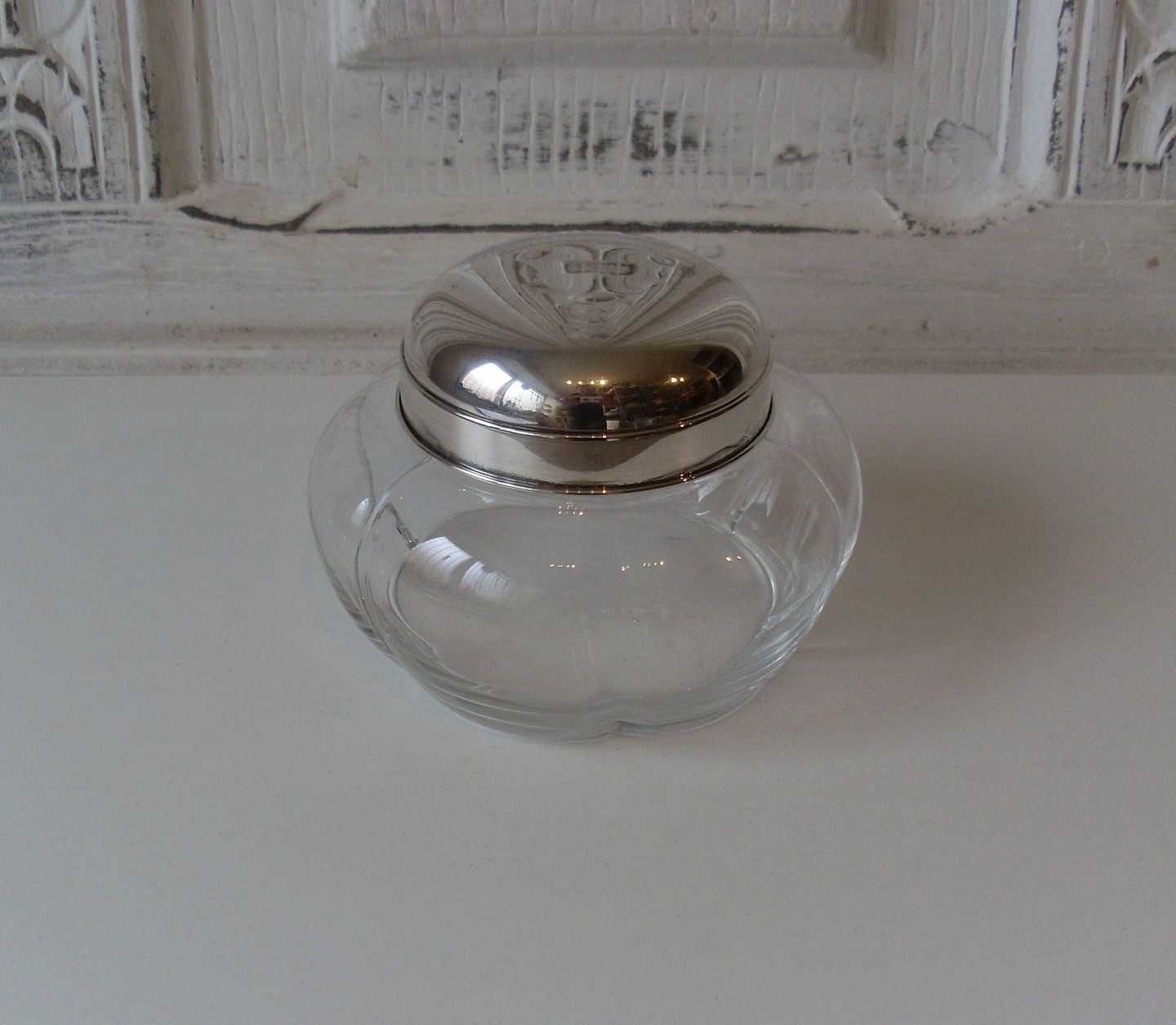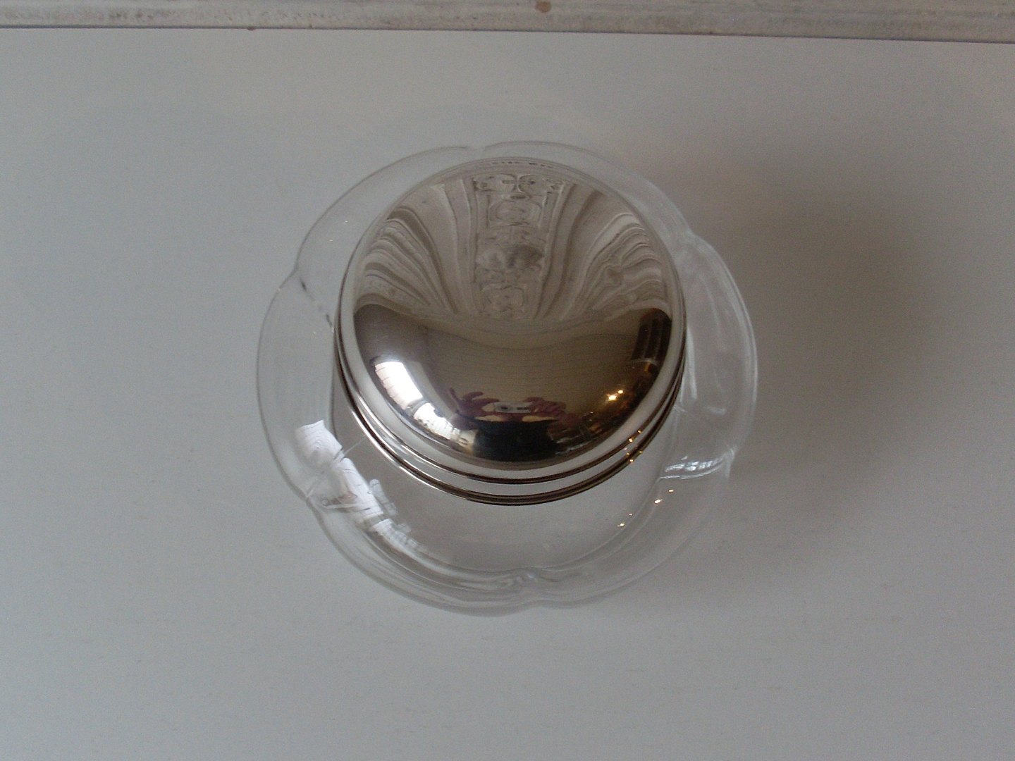 Bon bonnier i glas med låg af sterlingsølvFremstår med meget lille bule i låget.