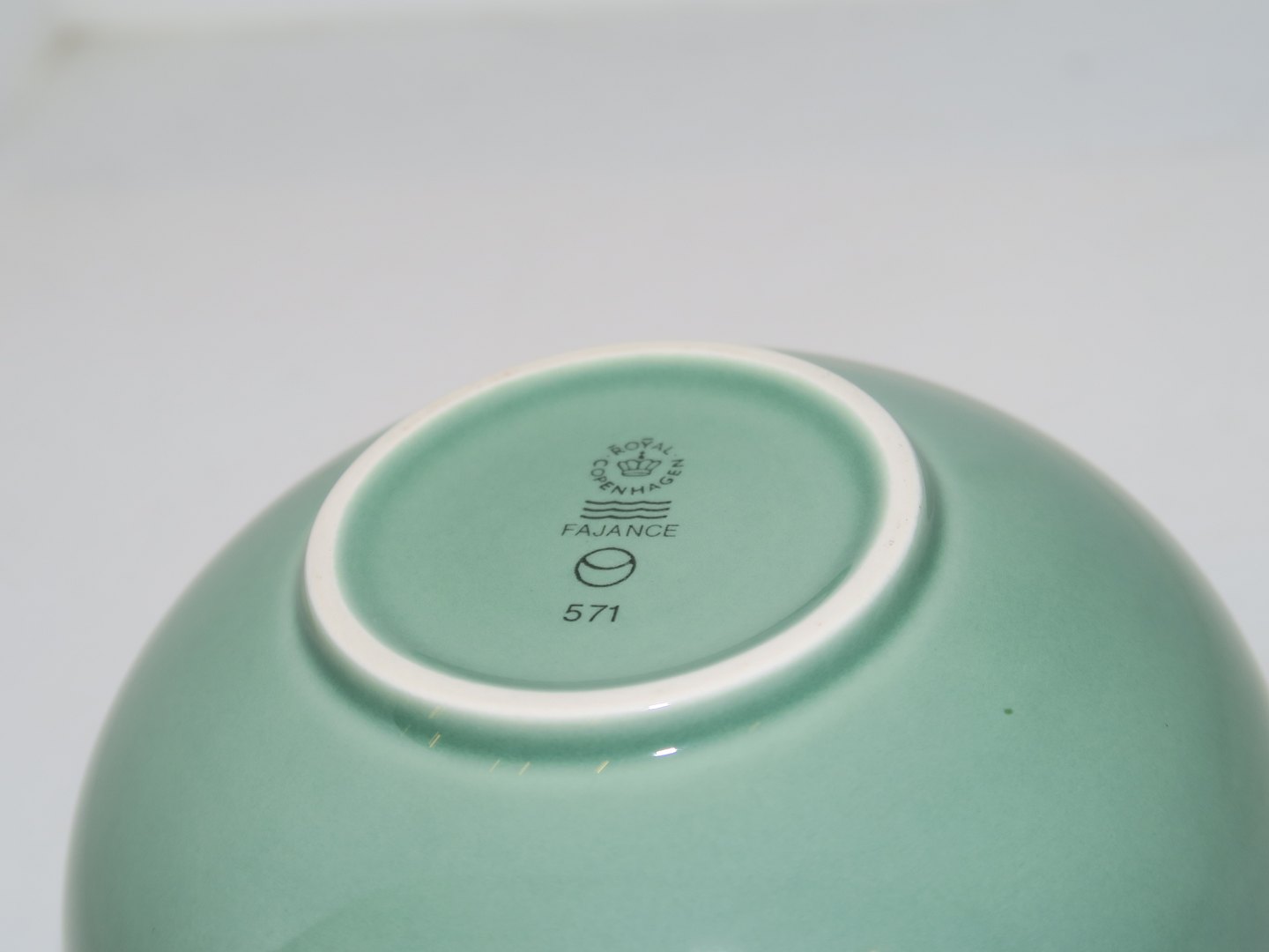 Royal Copenhagen 4 all seasons, green round bowl.Designed by Grethe Meyer in 1998 on the same form as "Blue Line".