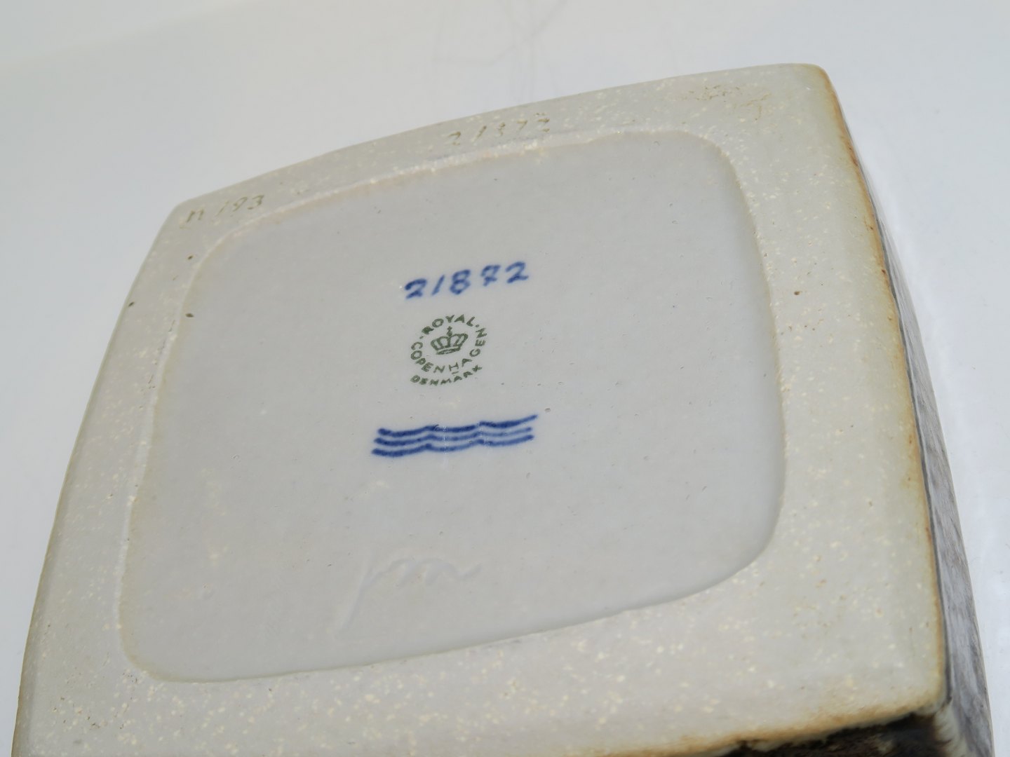Royal Copenhagen art pottery, square dish.Designed by artist Jorgen Mogensen.