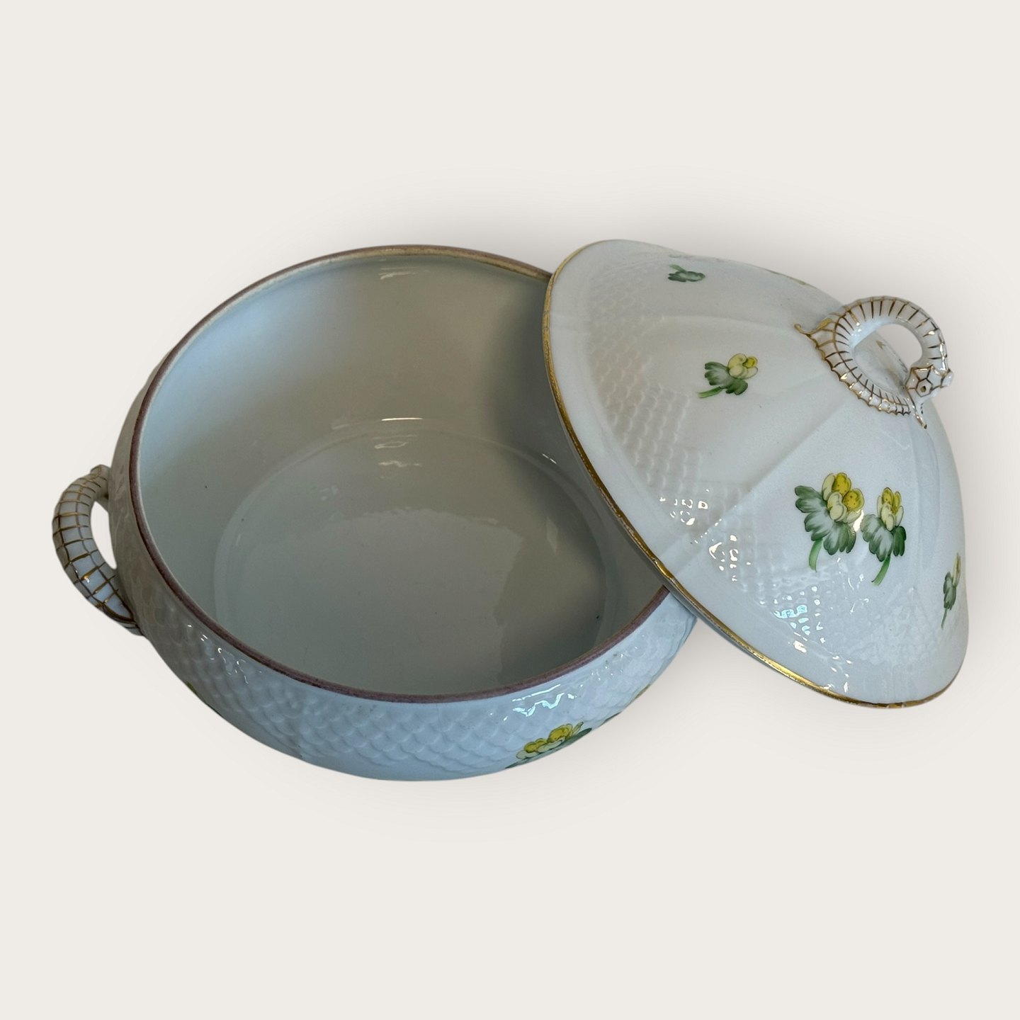 Bing & Grondahl, Erantis, Terrine #5, 25cm in diameter, 16cm high, 25cm in diameter, 1st Grade *Wear on the gold rim of the saucer (see last 2 photos) otherwise in good used condition*Stock: 1