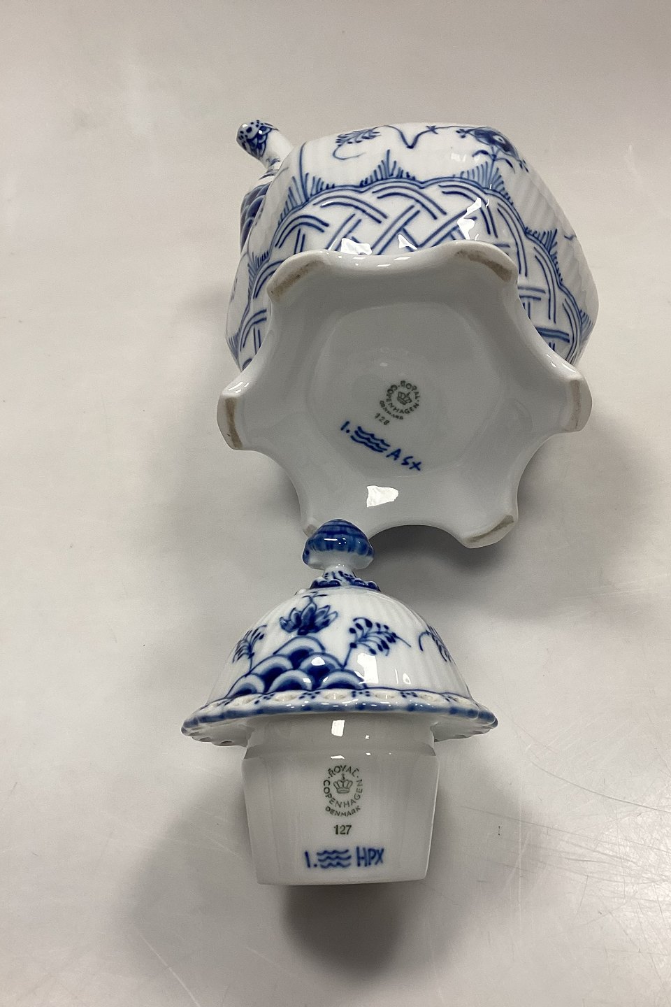 Royal Copenhagen Musselmalet Helblonde sekskantet Kaffekande No. 128 / Låg No. 127. Måler 29 cm / 11,41 in. 1. Sortering.Lager: 1