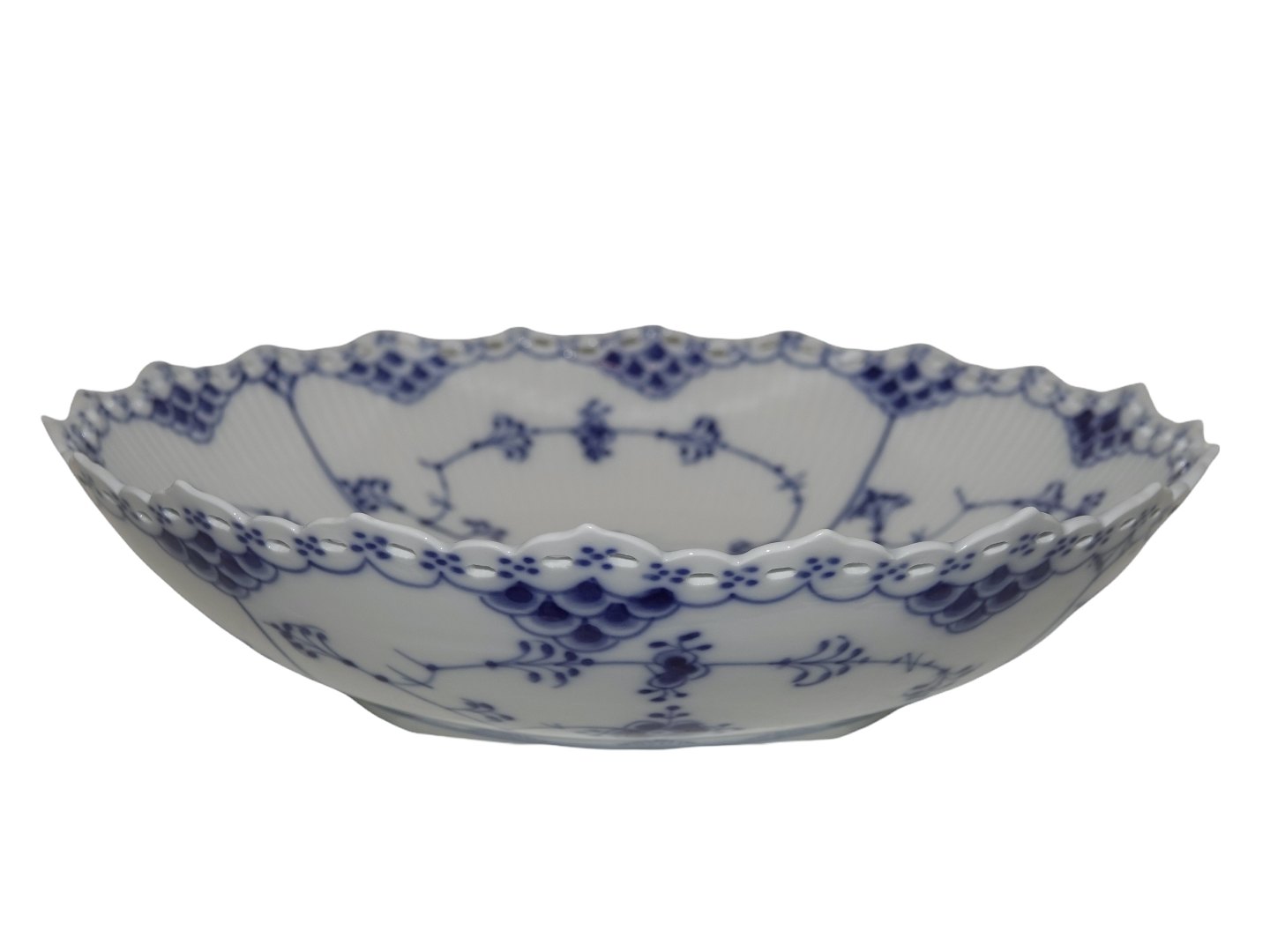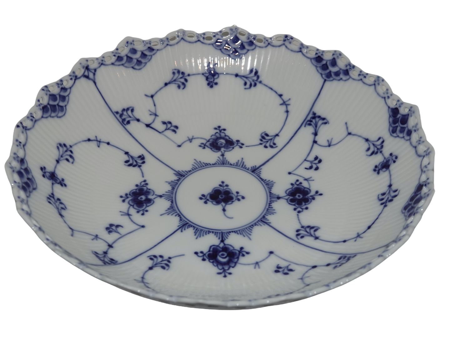 Royal Copenhagen Blue Fluted Full Lace, large round bowl.The factory mark shows, that this was produced between 1975 and 1979.