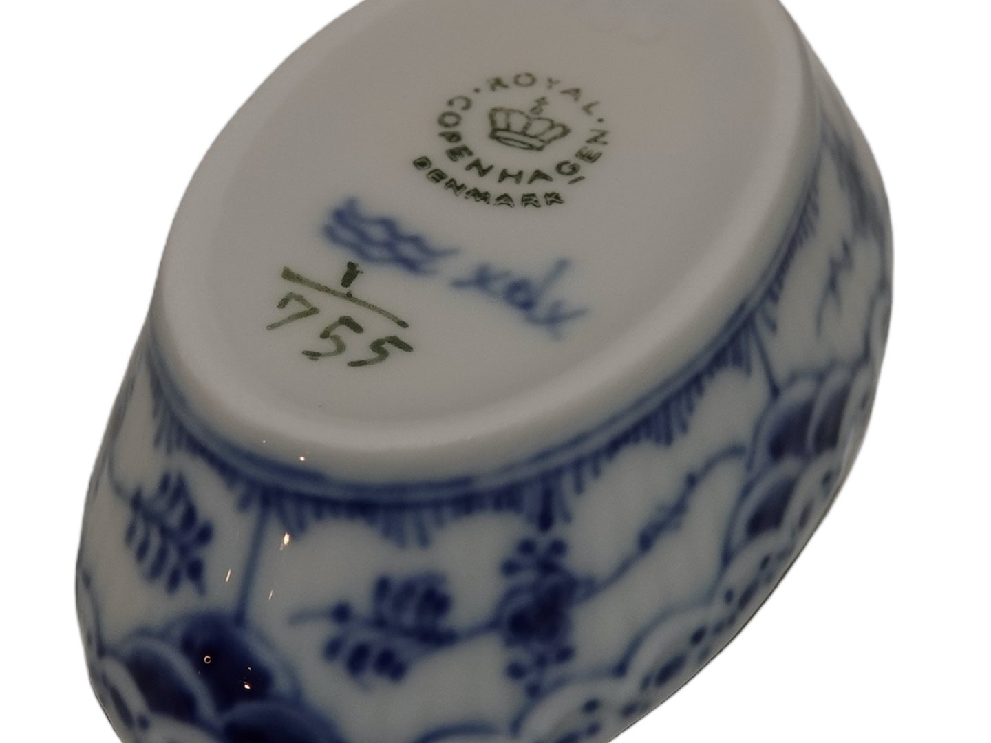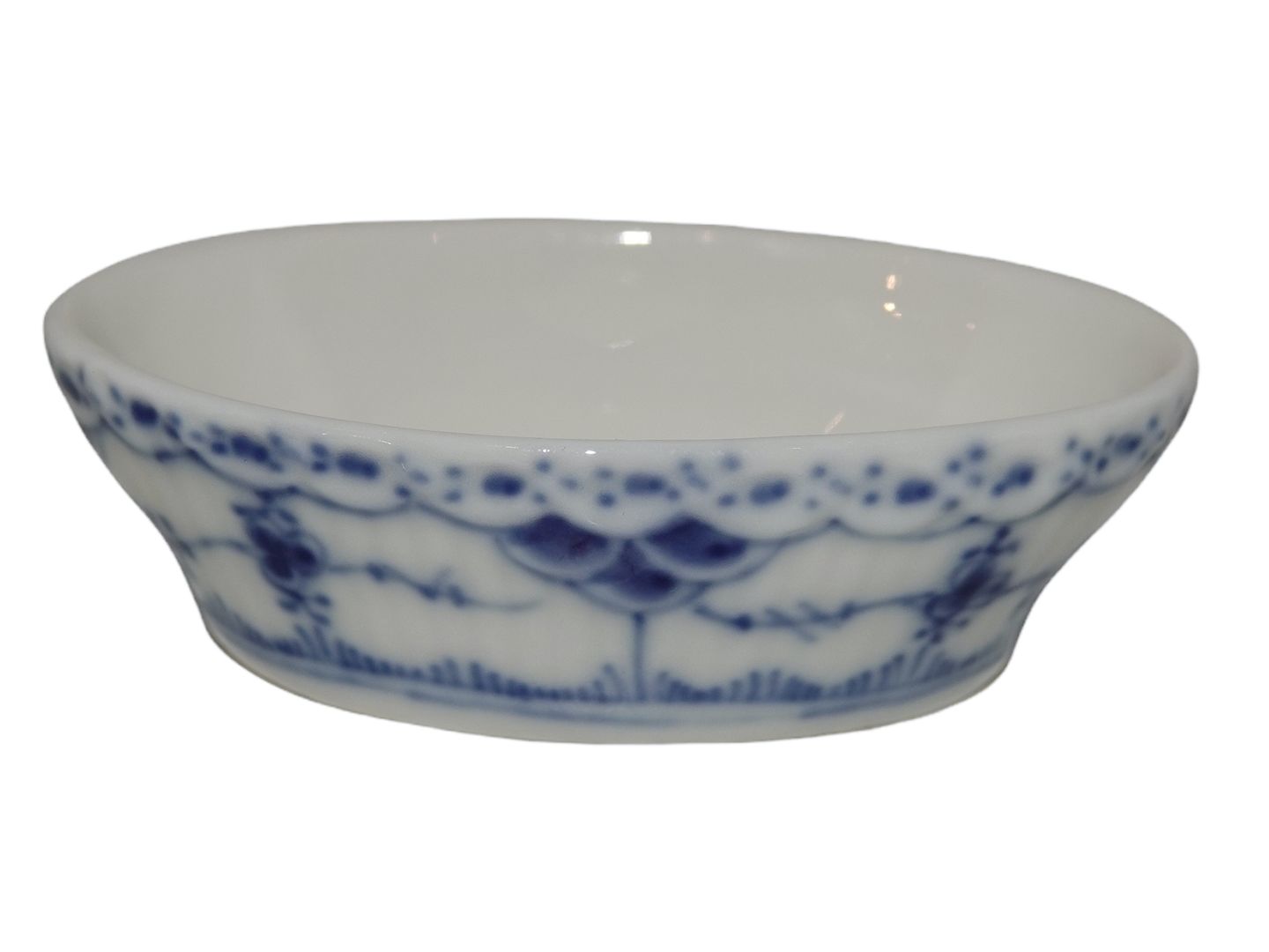 Royal Copenhagen Blue Fluted Half Lace, oval salt jar.Decoration number 1/755.