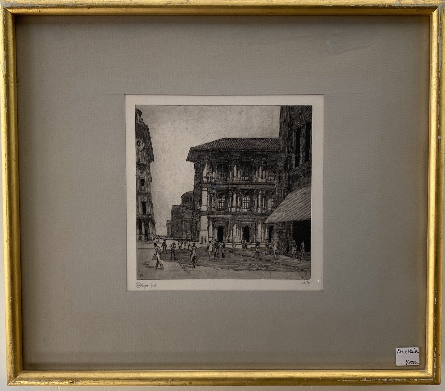 Palle NielsenKobberstik indrammet med passepartout i guldramme.
