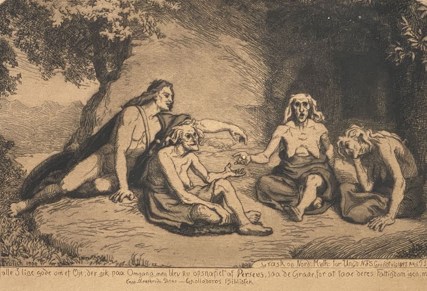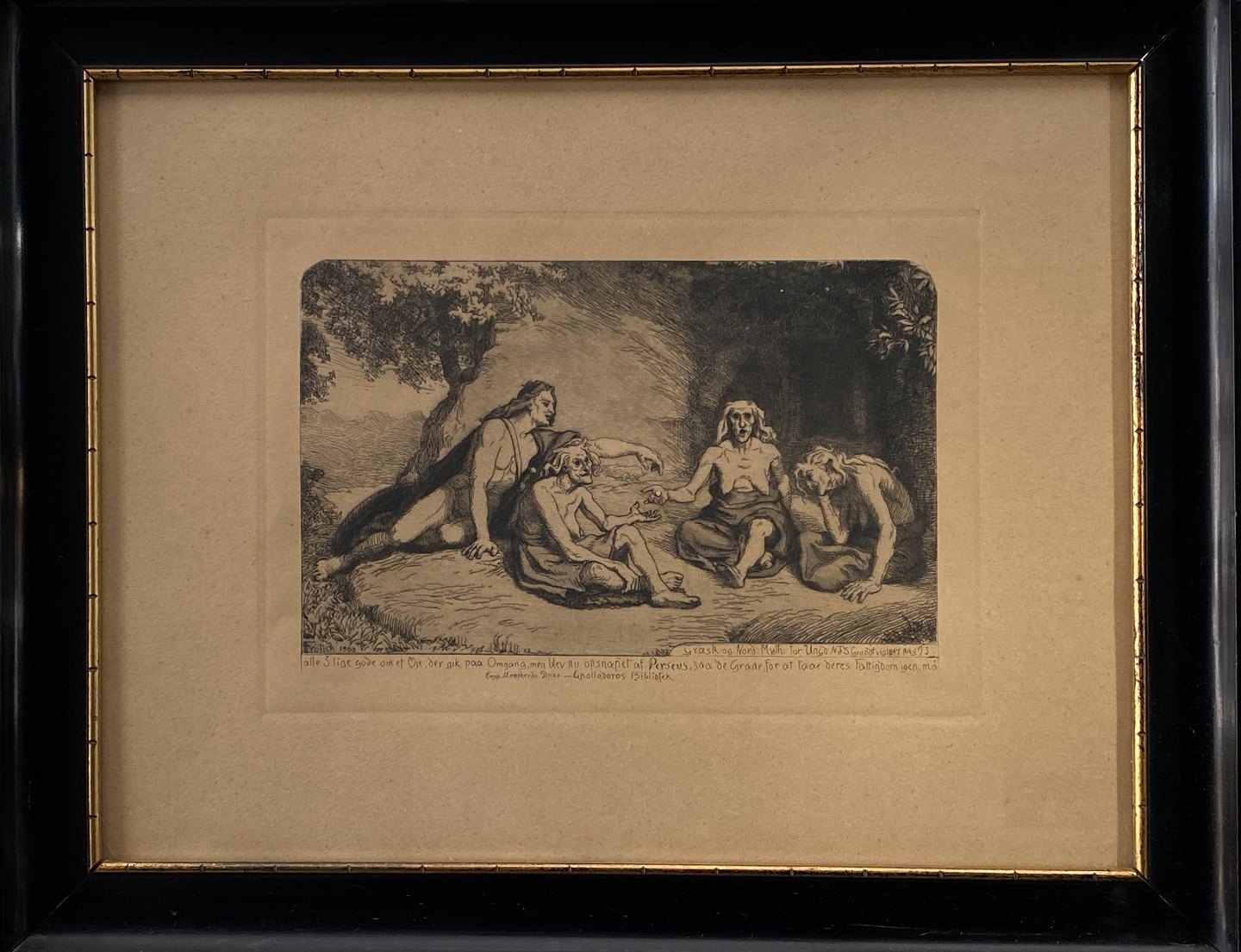 Motif from Grundtvig Greek and Norse mythology. Original erasing with mat in black frame. Dimensions: 35.5 x 44.5 cm. (18 x 25.5 cm).Item number: #34