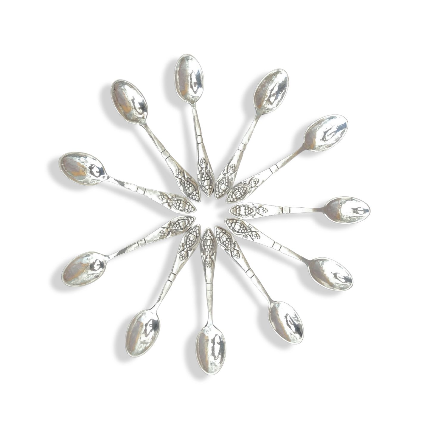 Georg Jensen.11 stk. Kaffeskeer model 10 af sølv. Stemplet Georg Jensen, Copenhagen, 10 samt GI 830s med monogram fra 1915-1930.