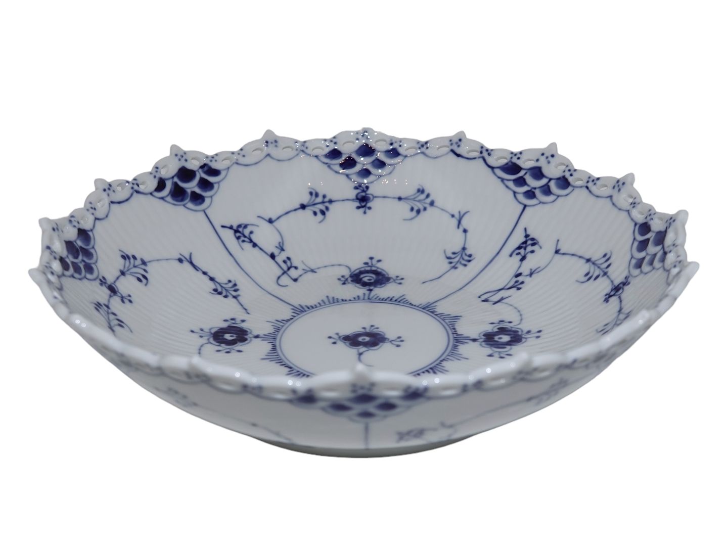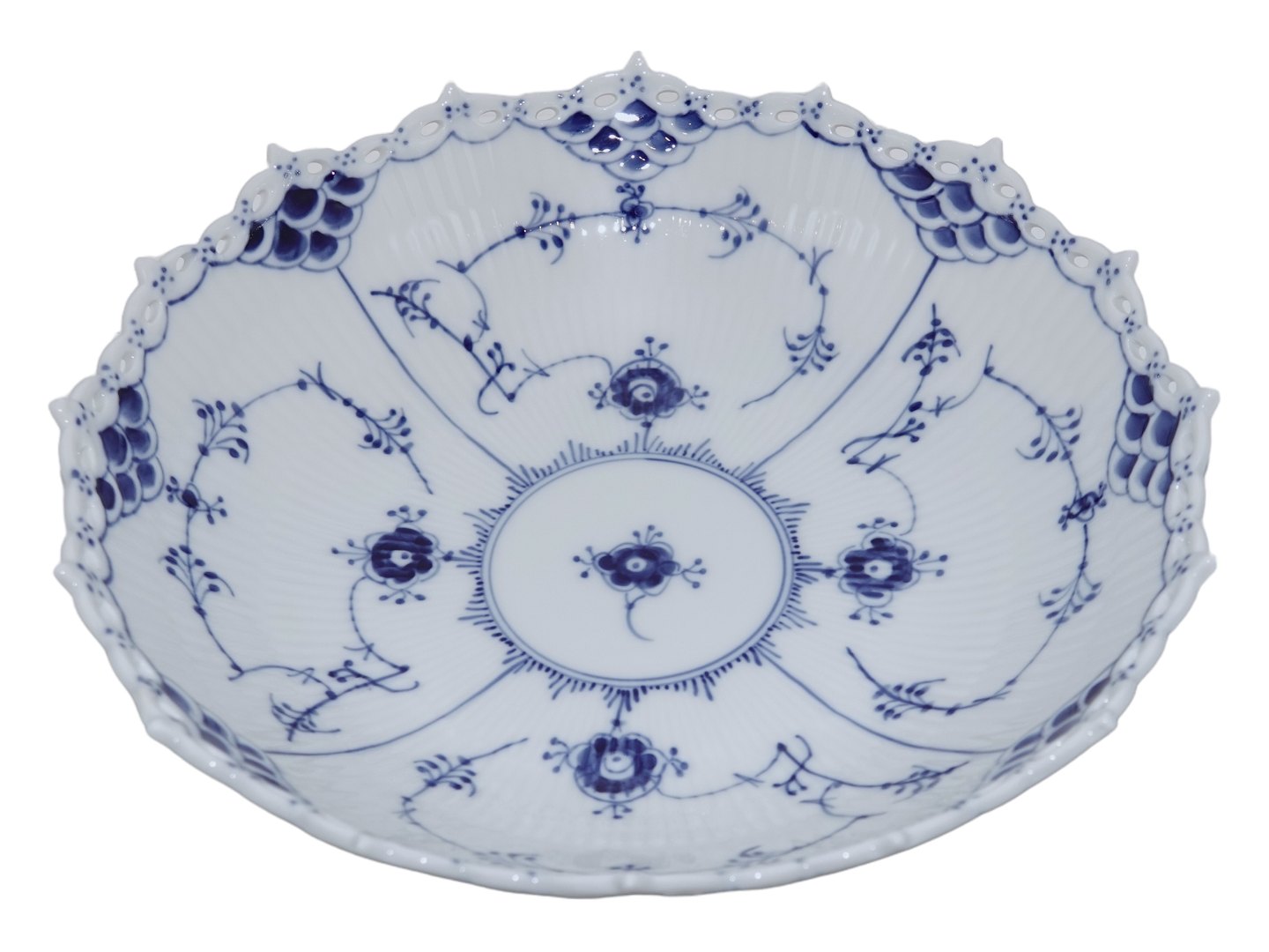 Royal Copenhagen Blue Fluted Full Lace, round bowl.The factory mark shows, that this was produced between 1969 and 1974.