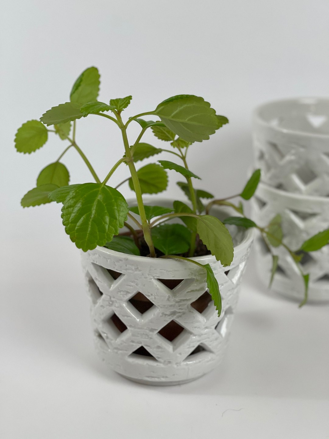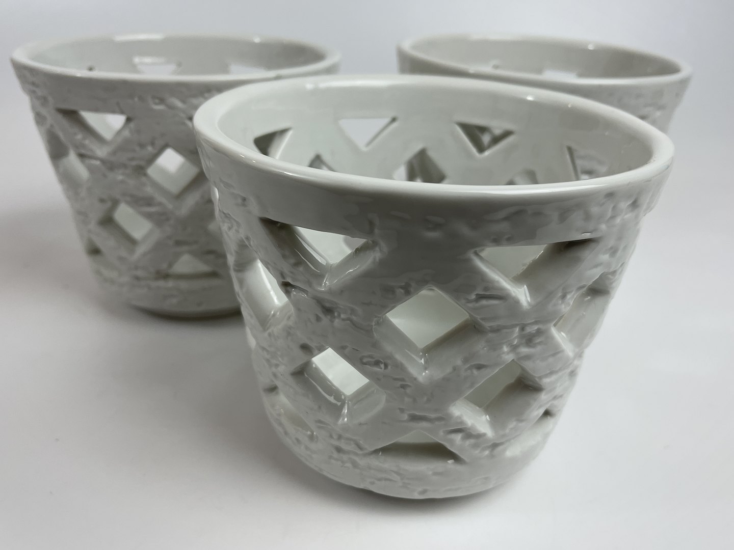 Gunnar Nylund for Rörstrand, set of three off-white chamotte flowerpots. The pots are all signed with Swedish Rorstrand's signature and with Gunnar Nylund's initials, GN.Height: Approximately 13 centimeters.