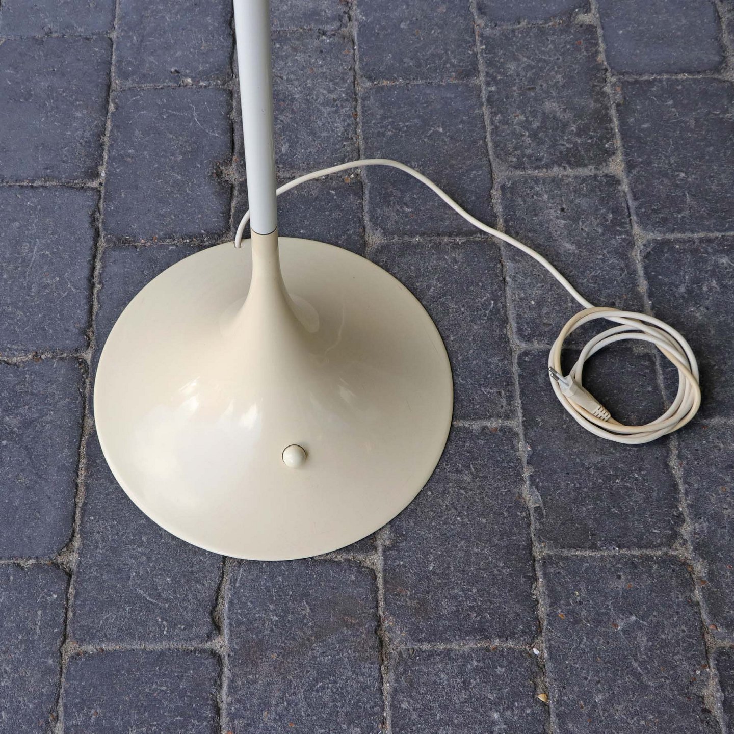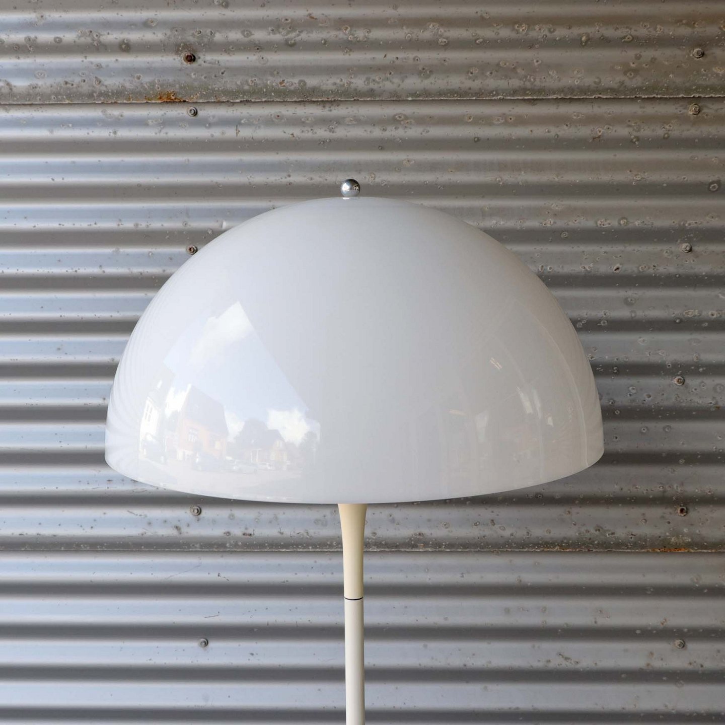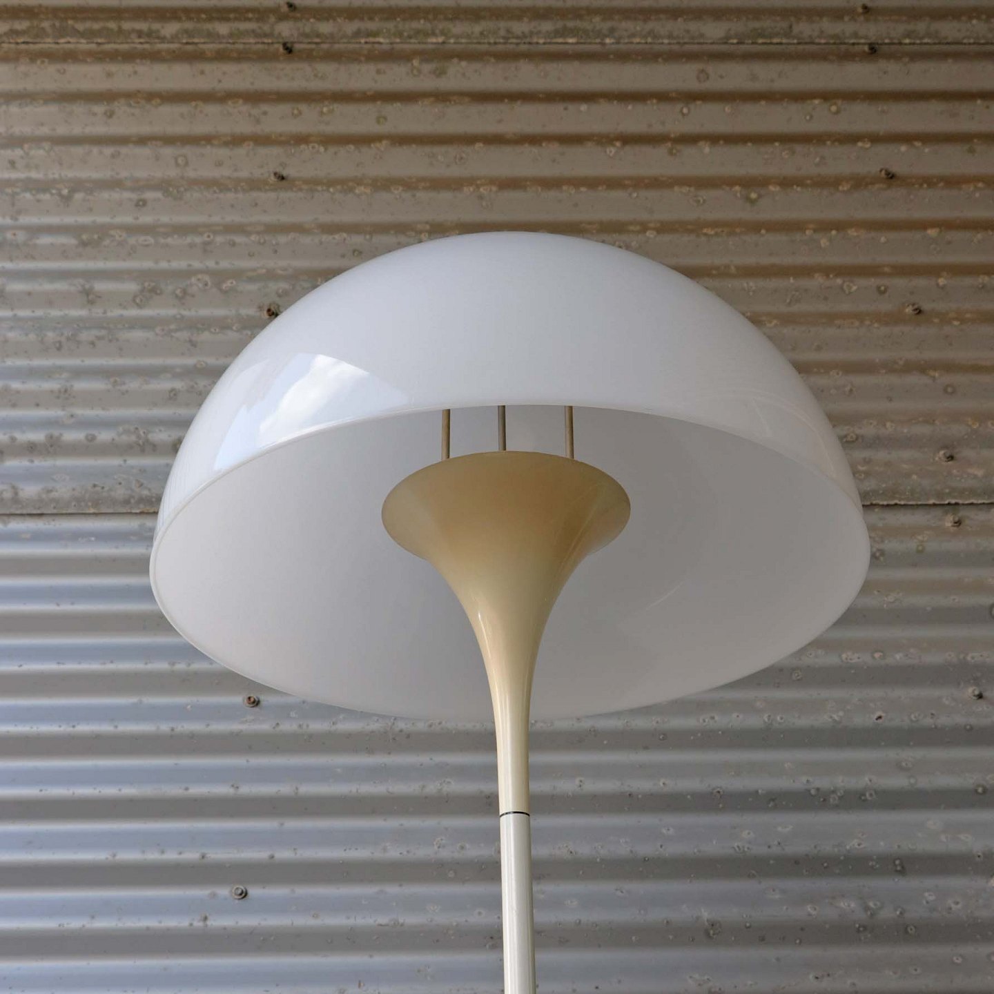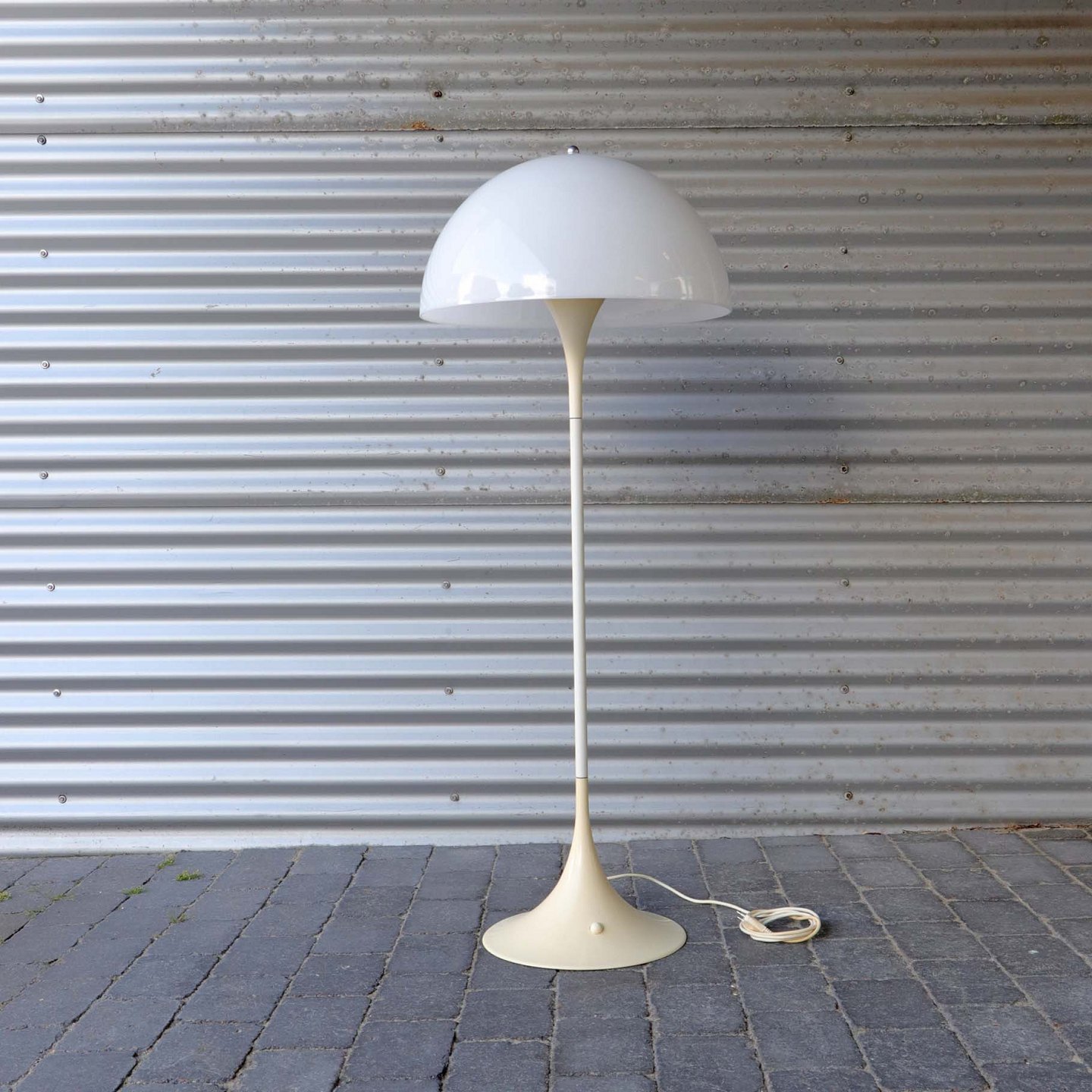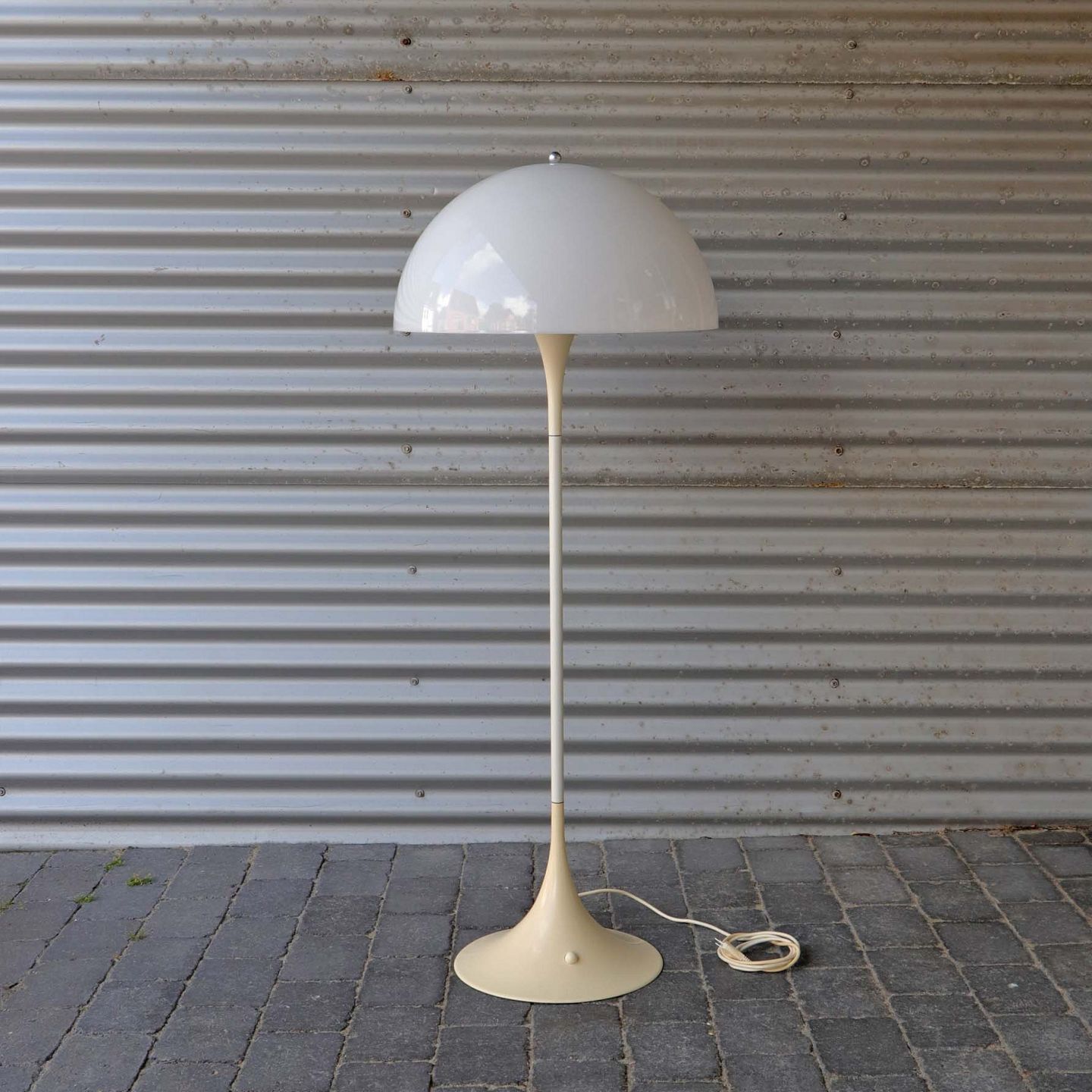 Panthella standerlampe i hvidlakeret metal og hvid plastskærm.Pæn stand.