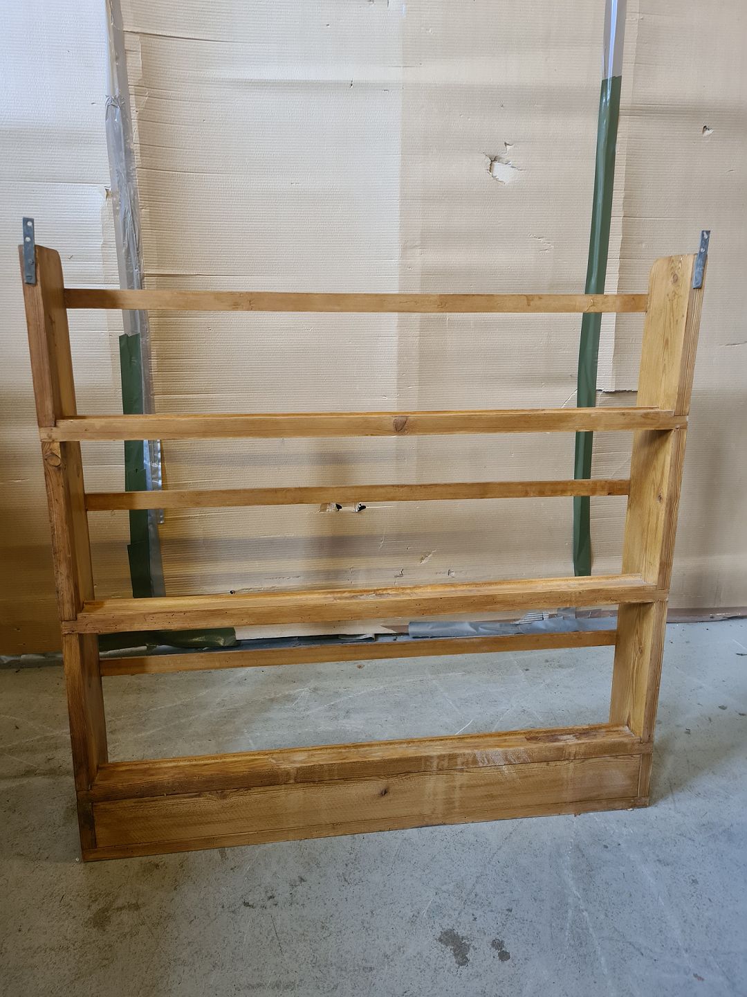 Tallerkenrække i massivt fyrretræ, fra 1930erne.Den har patina.