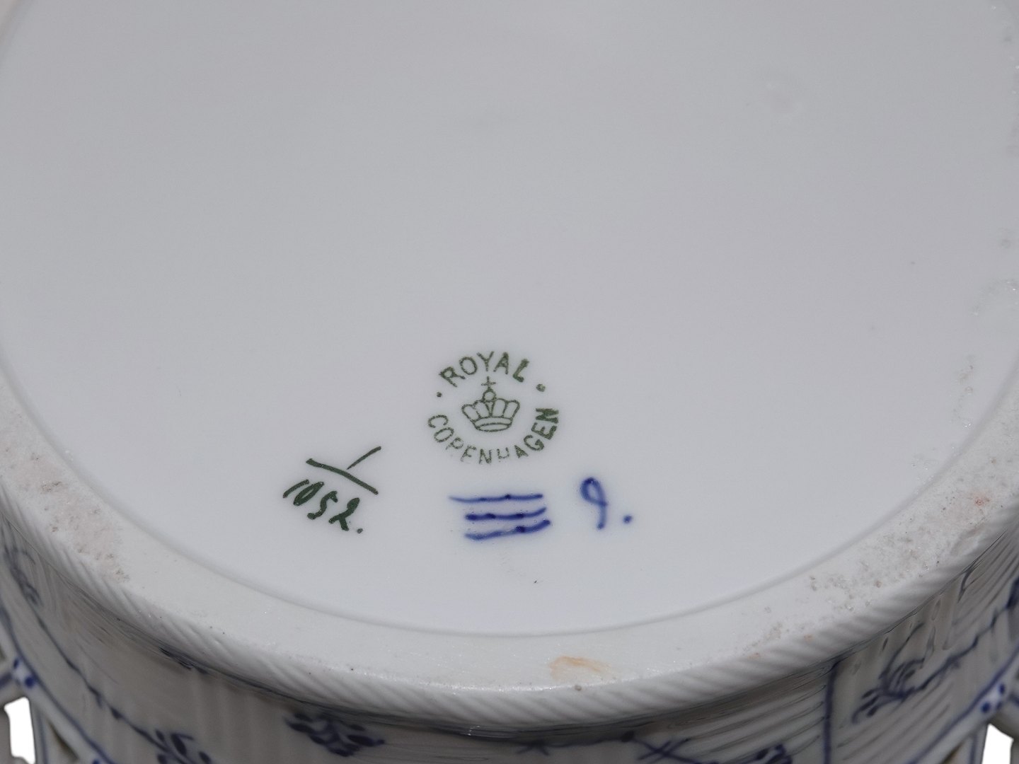 Royal Copenhagen Blue Fluted Full Lace, round fruit bowl.The factory mark shows, that this was made between 1898 and 1923.