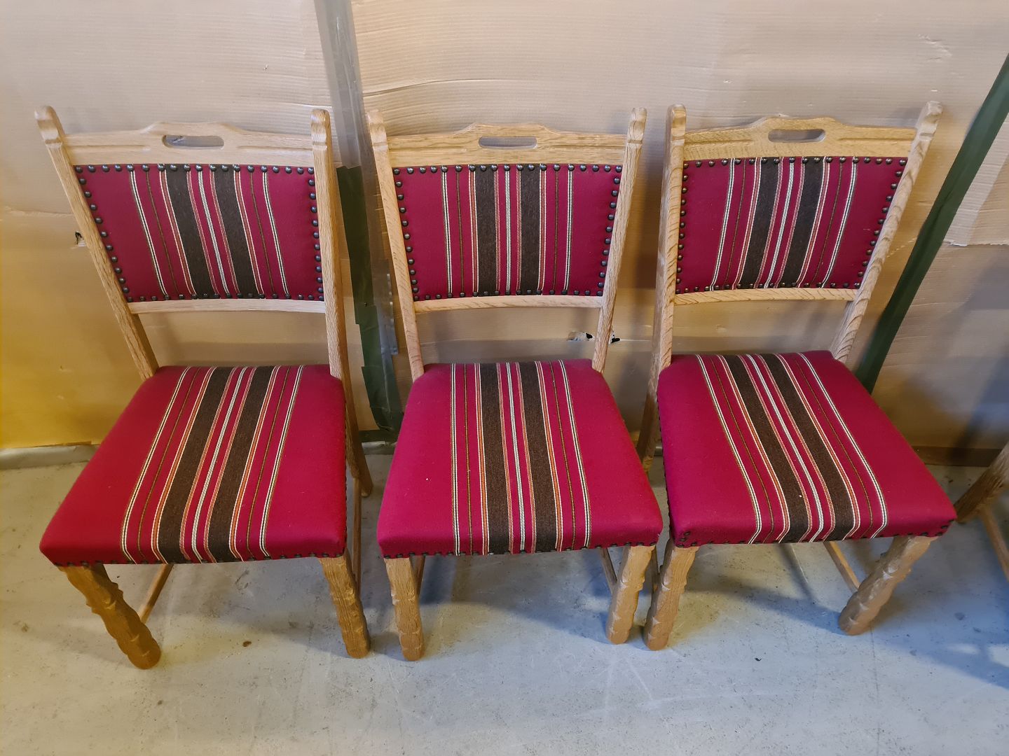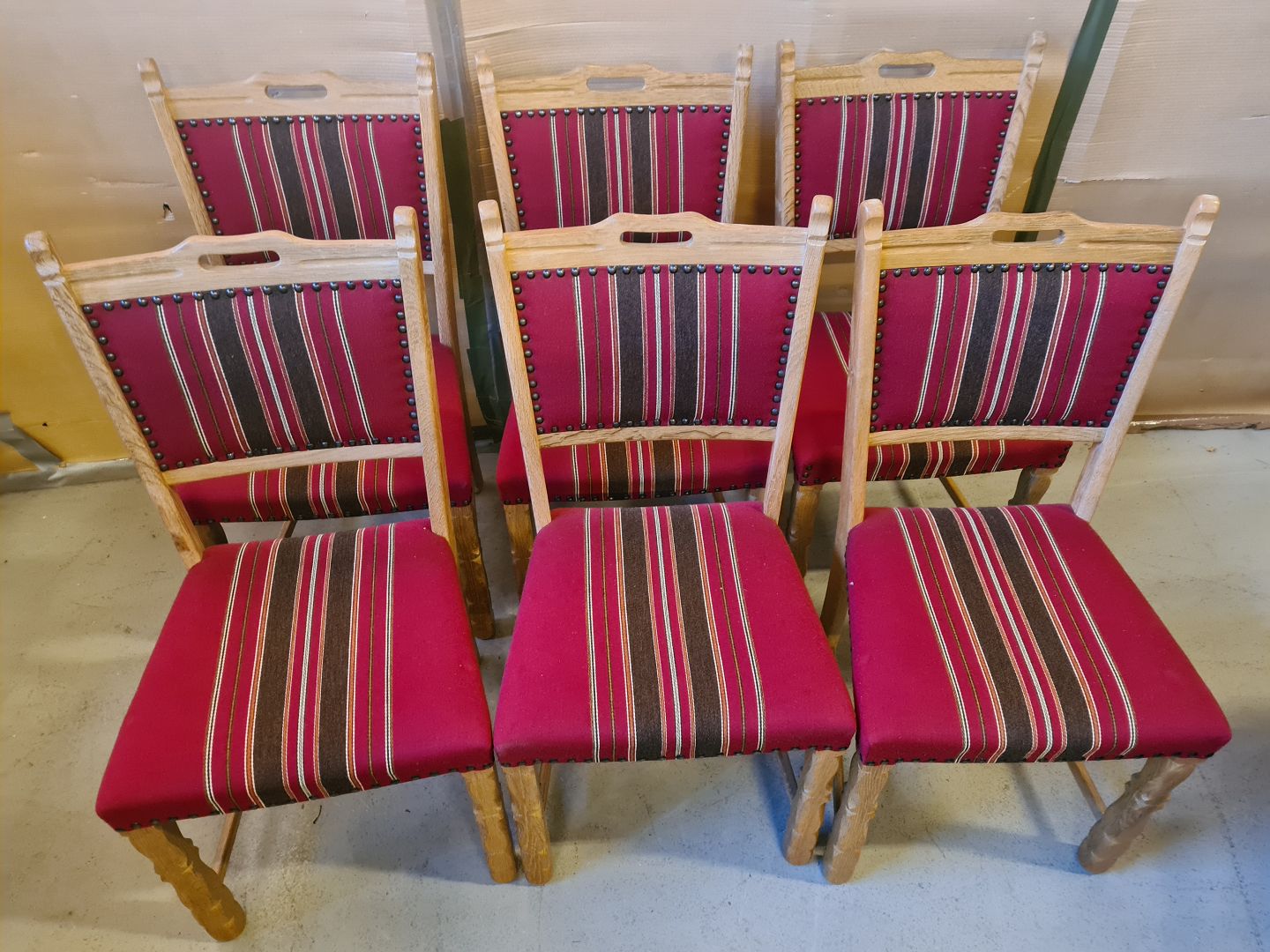 6 Stole i massivt egetræ, fra 1980erne.De har små brugsspor.