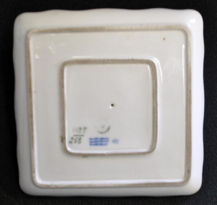 Royal Copenhagen porcelain inkwell, 1127/258, 20th century Copenhagen, Denmark. White porcelain with light blue overpaints and roses. Wavy edge. Height: 4.6 cm. 15 x 15 cm.Perfect condition!