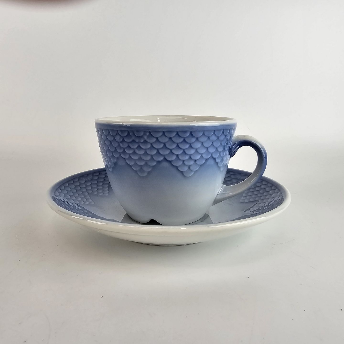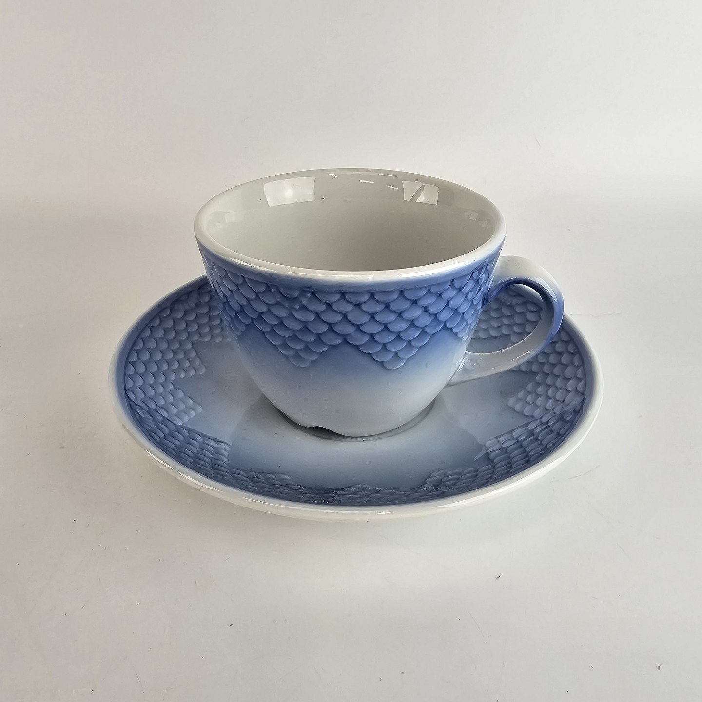 Te kop og underkop fra stellet Blå Tone. Nr. 746Producent Bing & Grøndahl