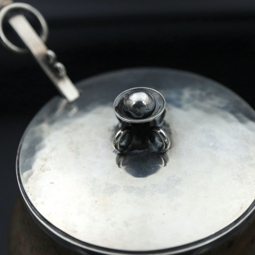 Sterling Silver Lid designed and crafted by Hans Hansen Silversmithy, Kolding. 1937. Stamped Hans Hansen, Anno 1937, Denmark, 925S.