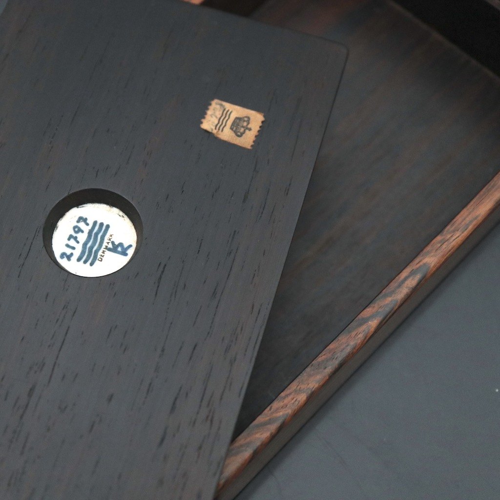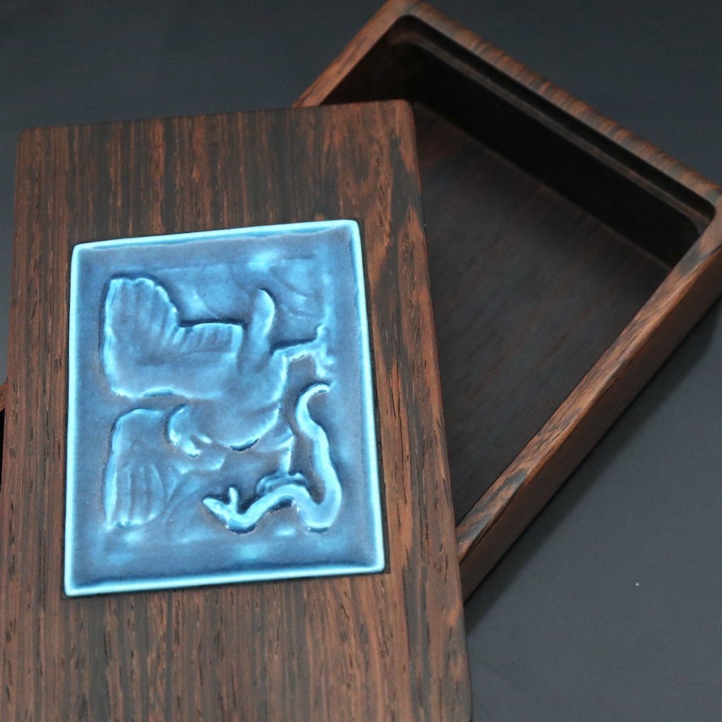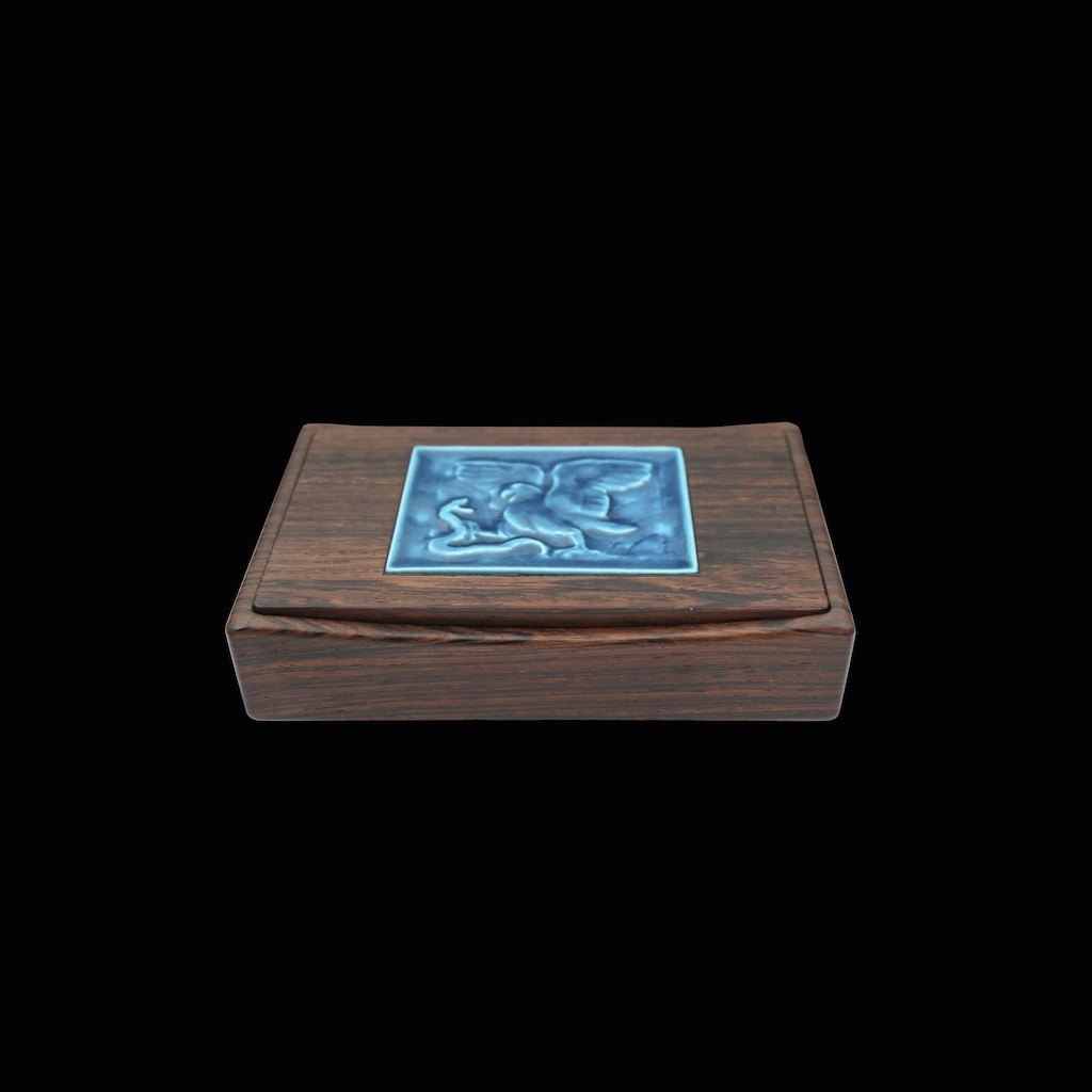 Royal Copenhagen / Knud Kyhn. Solid Rosewood Box with blue Ceramics Relief #21797.Designed and crafted by Royal Copenhagen / Knud Kyhn 1880 - 1969.