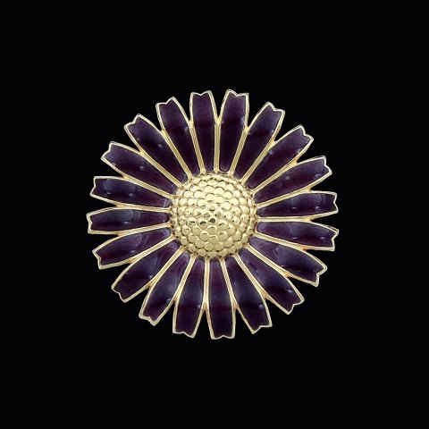 A. Michelsen. Gilded Sterling Silver Daisy Brooch with Purple Enamel - 43mm.Crafted by A. Michelsen (1841 - 1985)