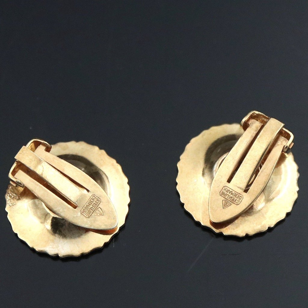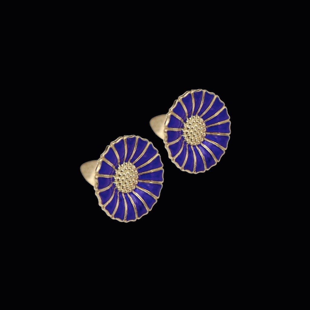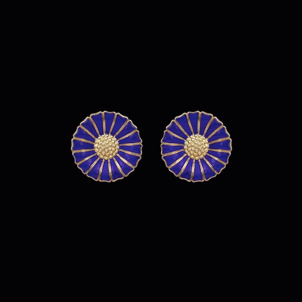 A. Michelsen. Gilded Sterling Silver Daisy Ear Clips with Blue Enamel - 18mm.Crafted by A. Michelsen (1841 - 1985)
