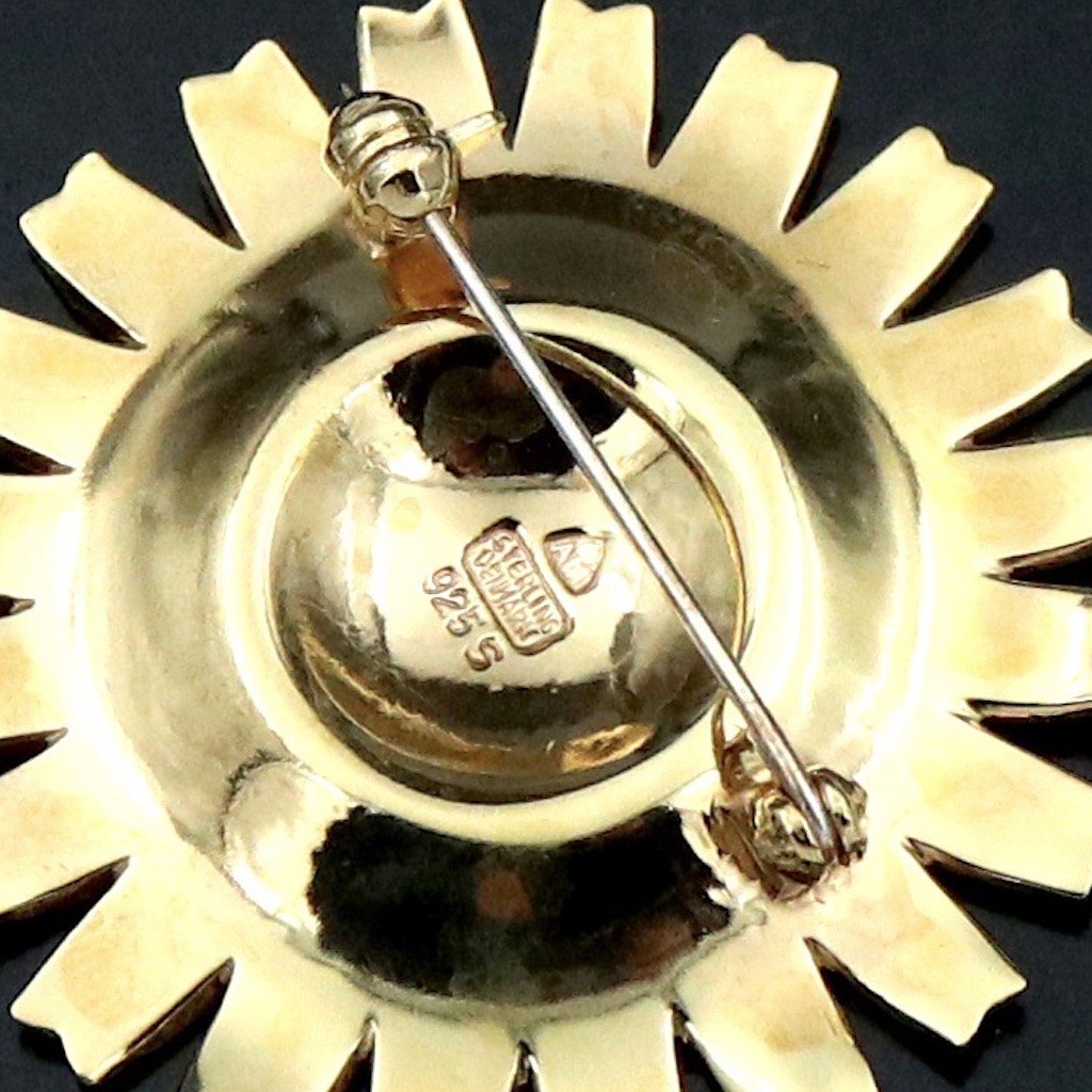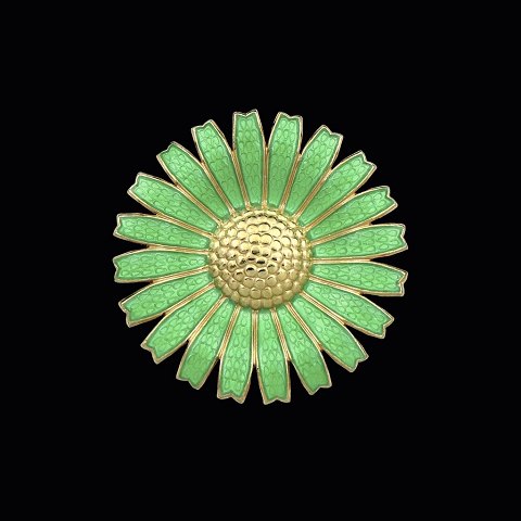 A. Michelsen. Gilded Sterling Silver Daisy Brooch with Green Enamel - 43mm.Crafted by A. Michelsen (1841 - 1985)