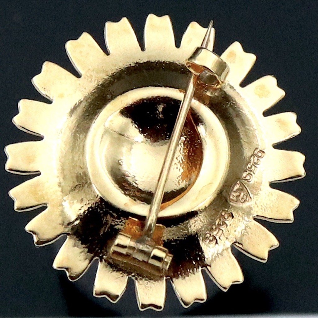 A. Michelsen. Gilded Sterling Silver Daisy Brooch with Turquoise Enamel - 33mm.Crafted by A. Michelsen (1841 - 1985)