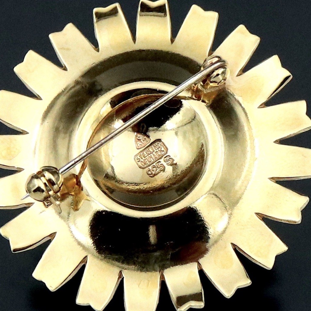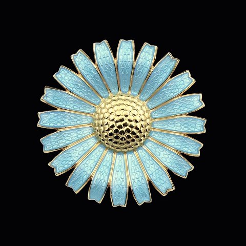 A. Michelsen. Gilded Sterling Silver Daisy Brooch with Turquoise Enamel - 43mm.Crafted by A. Michelsen (1841 - 1985)