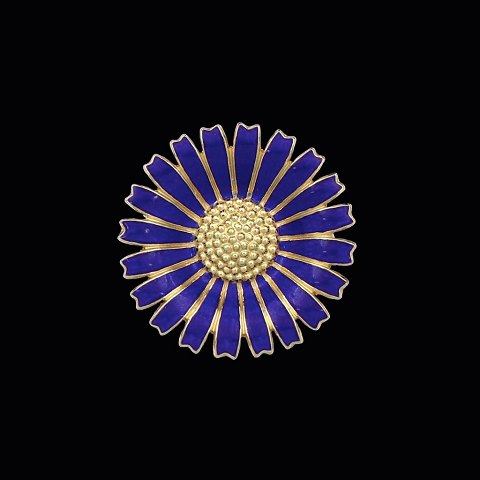 A. Michelsen. Gilded Sterling Silver Daisy Brooch with Royal Blue Enamel - 33mm.Crafted by A. Michelsen (1841 - 1985)